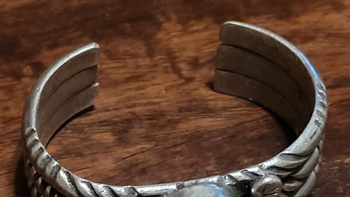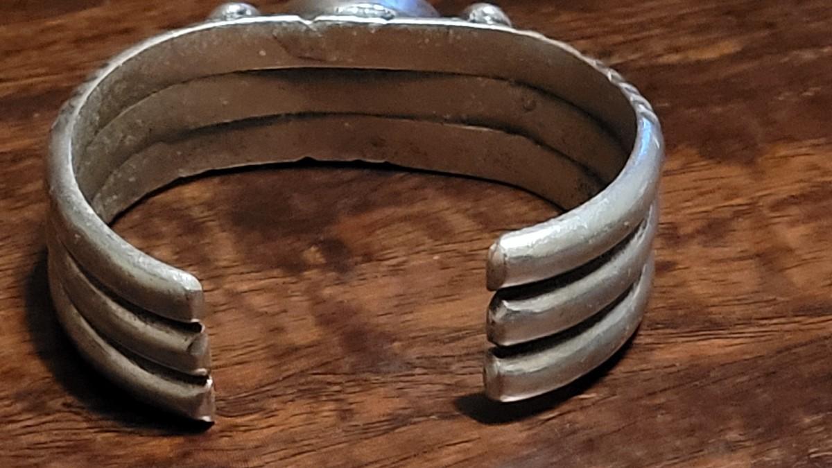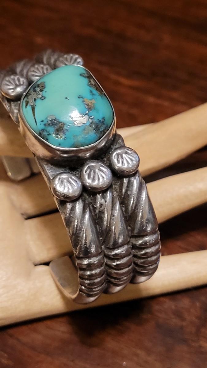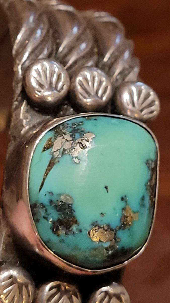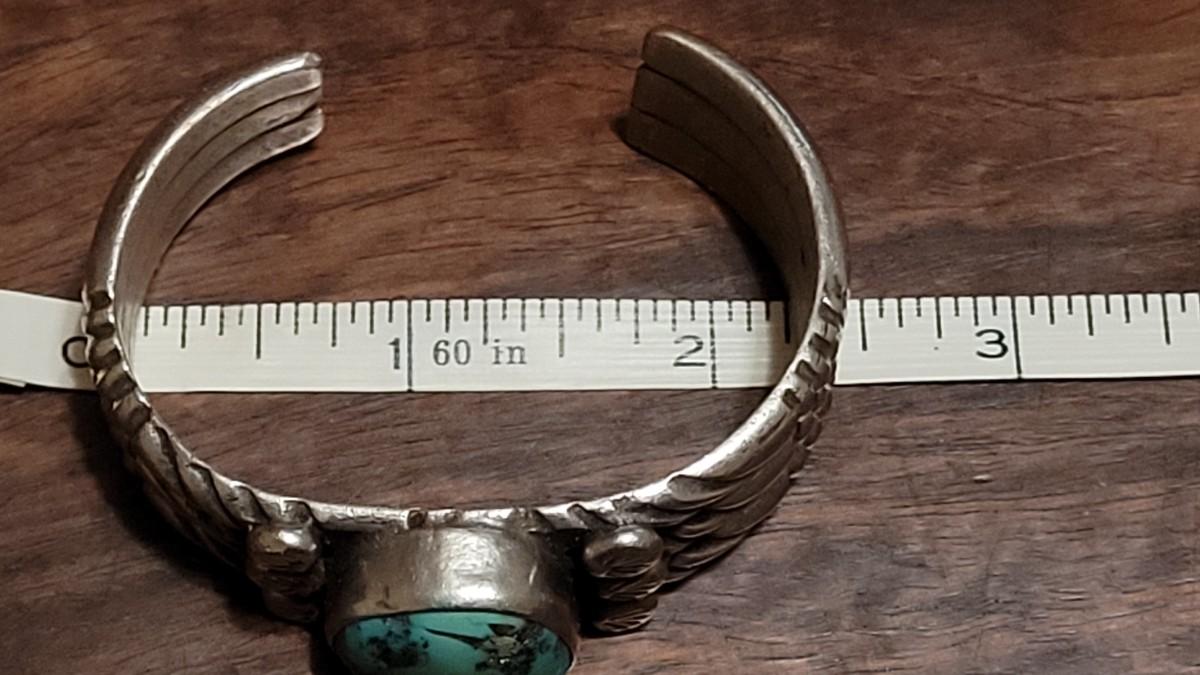 Lot 103: Old Pawn Navajo Heavy Silver & Royston Turquoise Cuff Bracelet