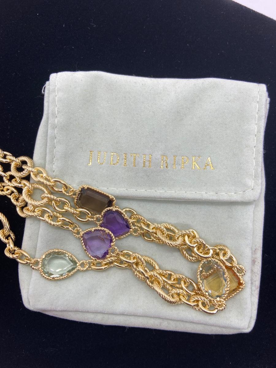 New Judith Ripka Necklace (Italy 925) Necklace with multi colored real gemstones approximately 30inchs.
