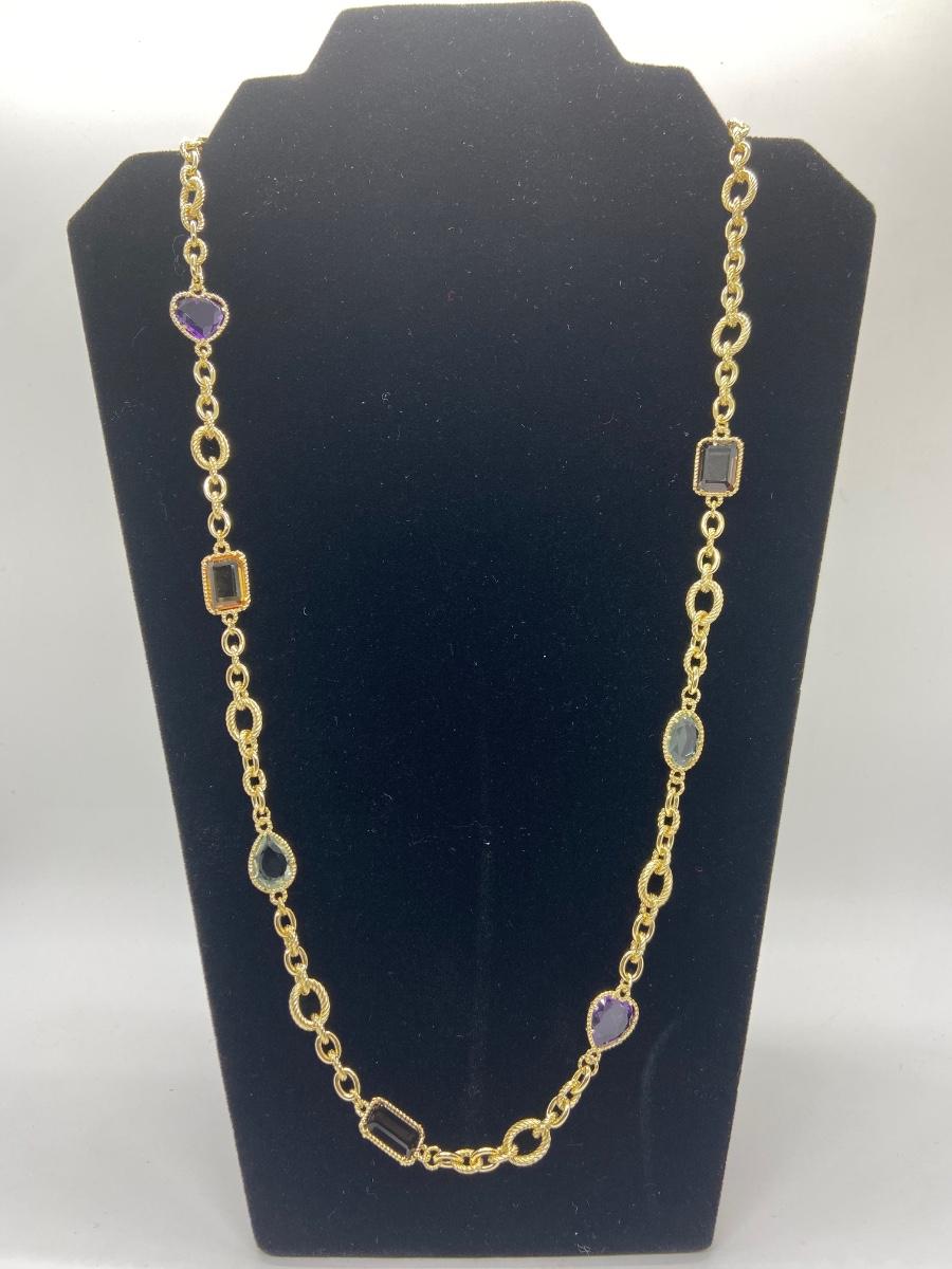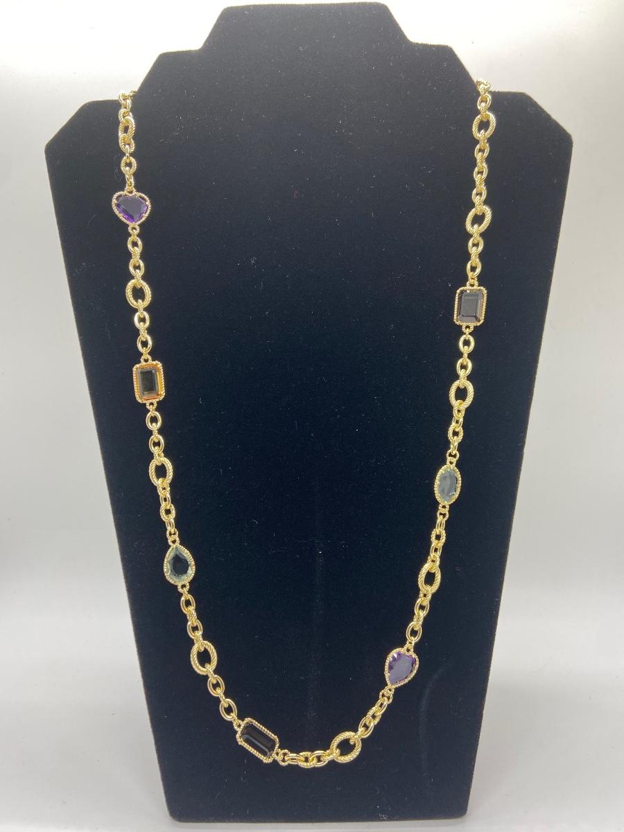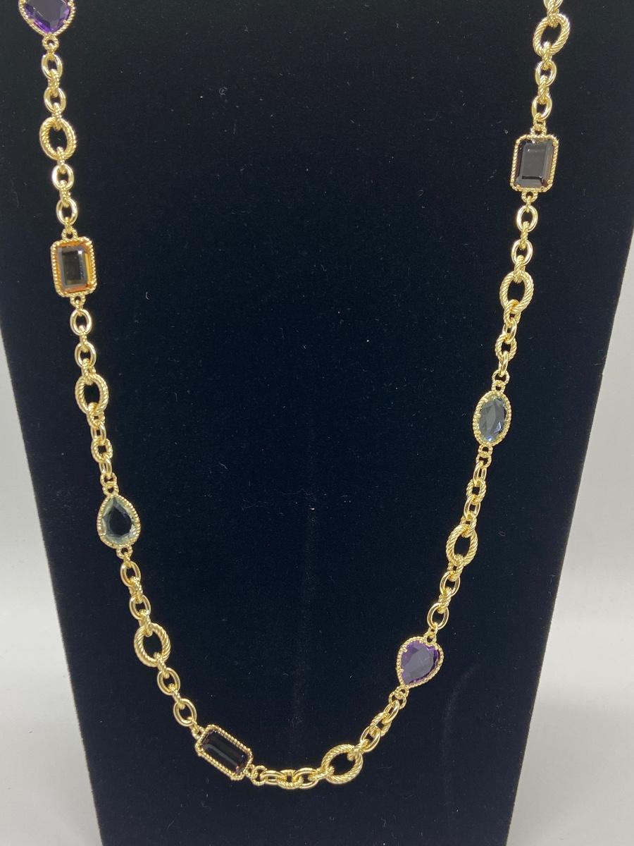 Lot 103: Judith Ripka: Gold Vermeil Necklace with Multi Colored real Gemstones