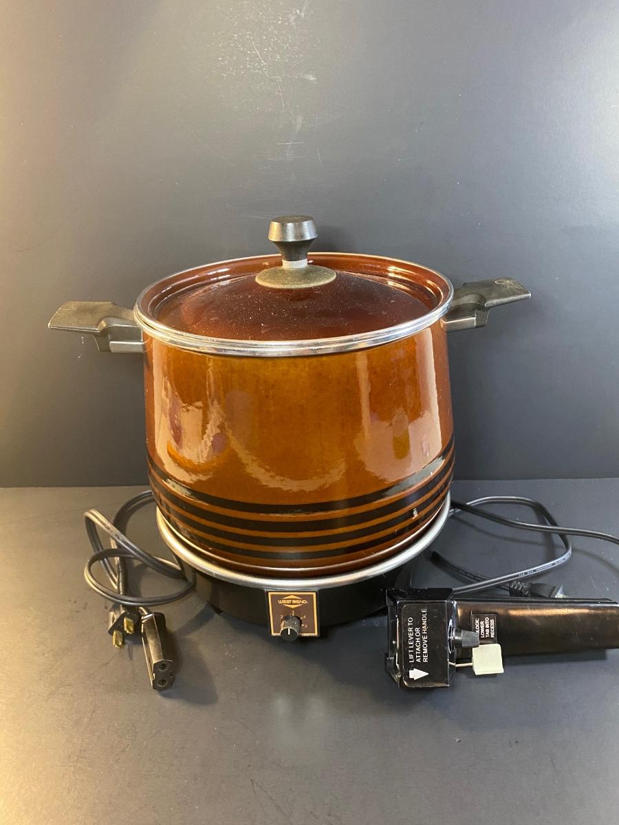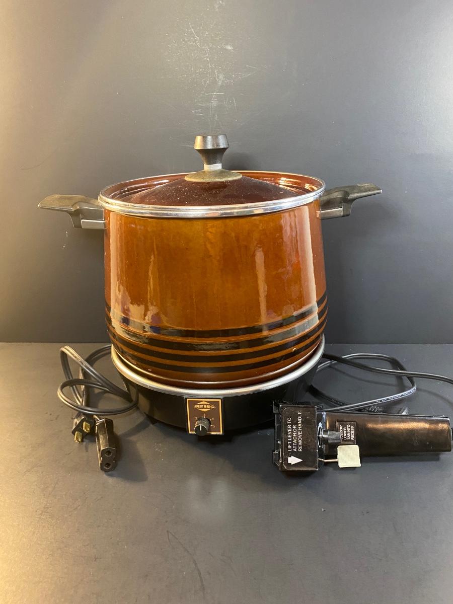 Vintage West Bend has both original plugs. Please see all pictures as they are the best representation of the items. The pictures show condition, measurements if taken, and what is included in the lot. Due to the large amount that we photograph and the time frame, we are not always able to take measurements. All items unless noted, are pre-owned and have been used. If you purchased furniture, you must bring help. We do not allow one person to carry large furniture out on their own. Bring help, tools and a truck for the safety of our client’s homes, and your personal safety. Company policy. Thank you.