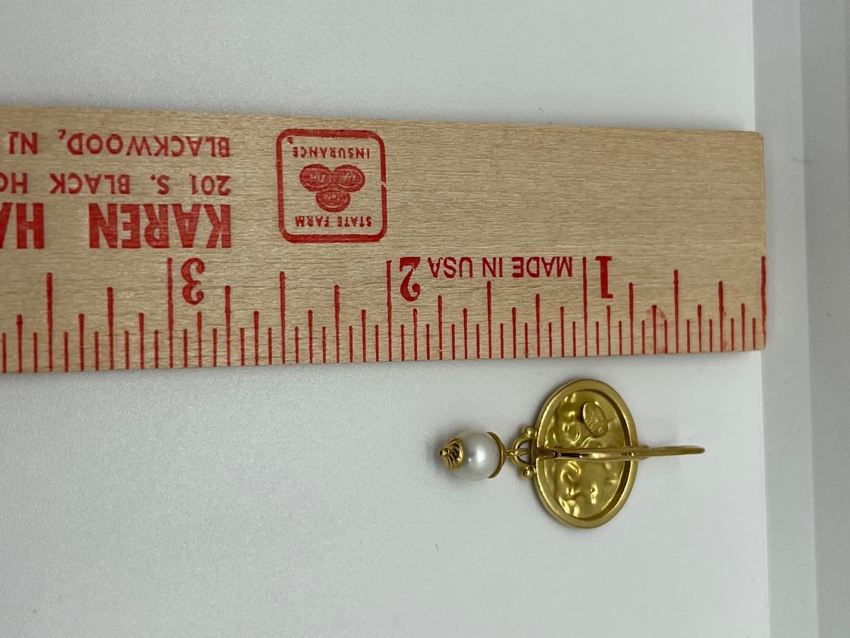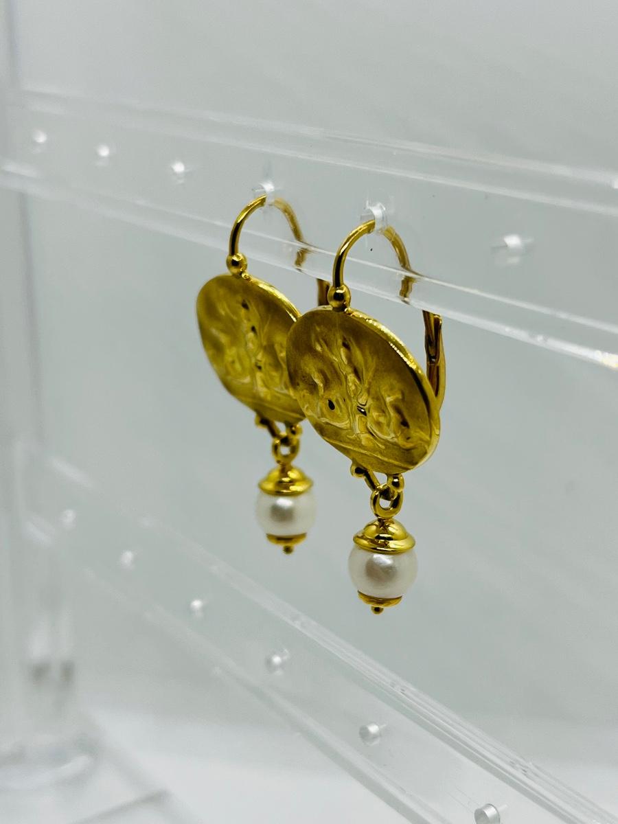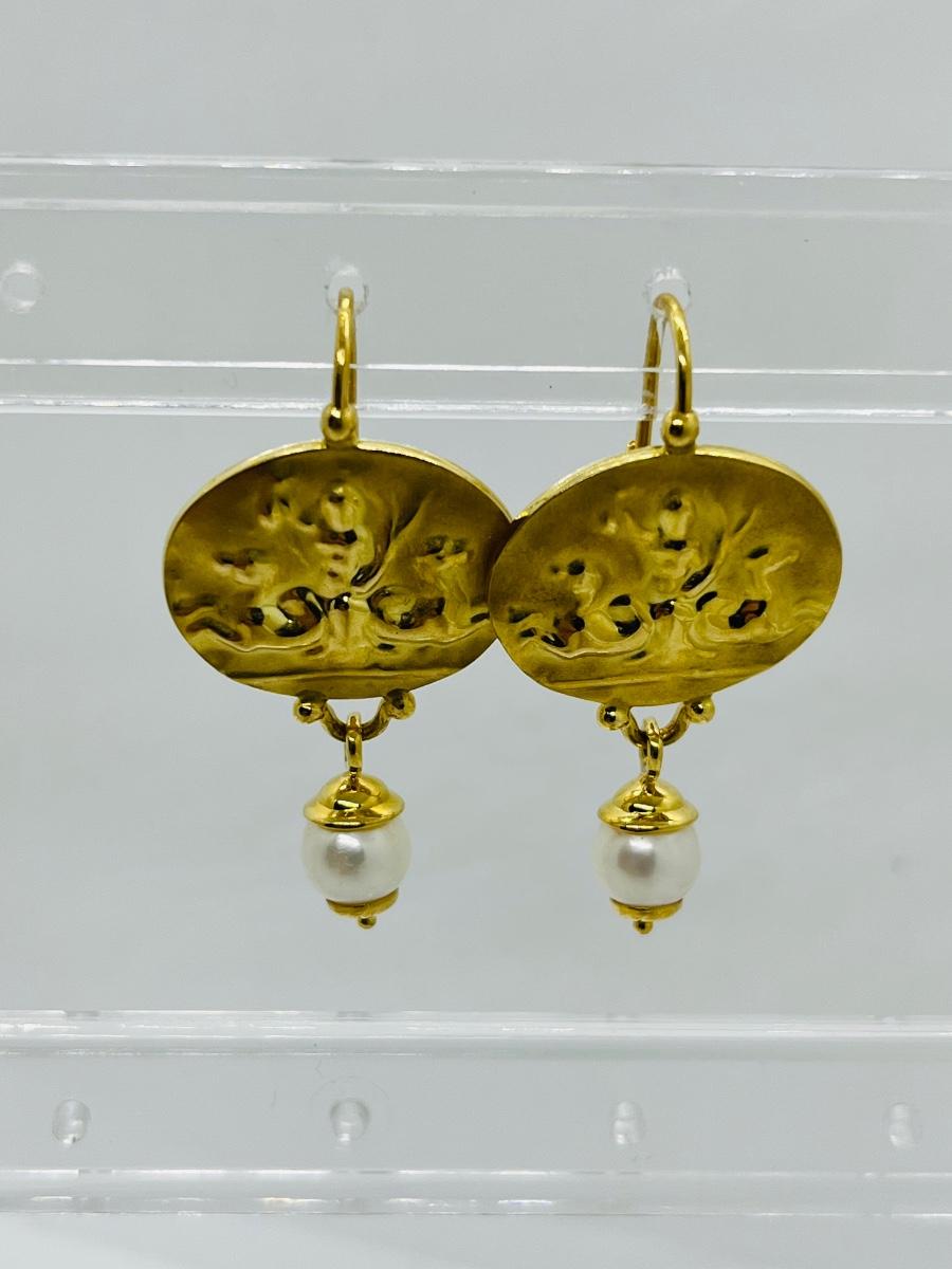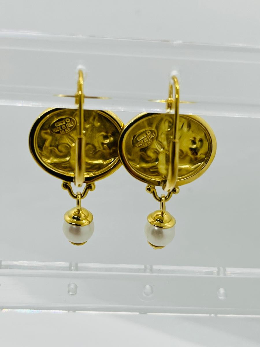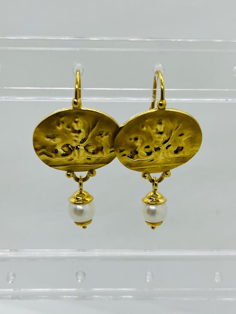 Lot 103: 6.4g 14k Venetian leverback dangle earrings with freshwater pearl dangle