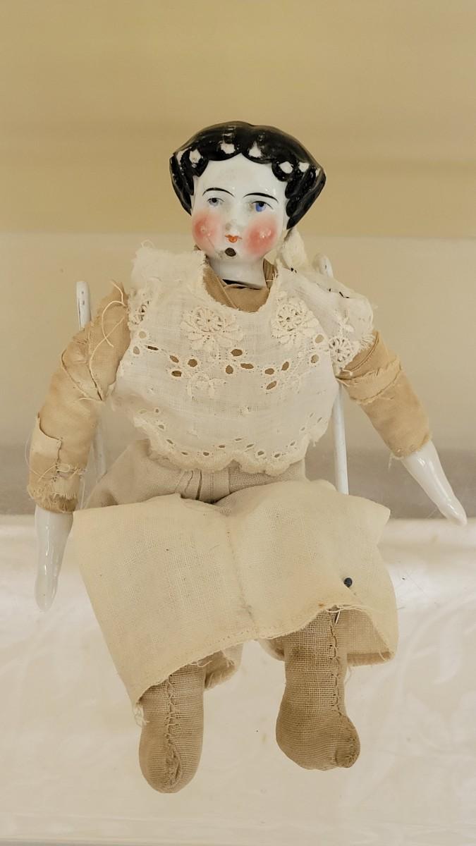Lot 103:  Antique Frozen Charlotte Doll & (2) Heads