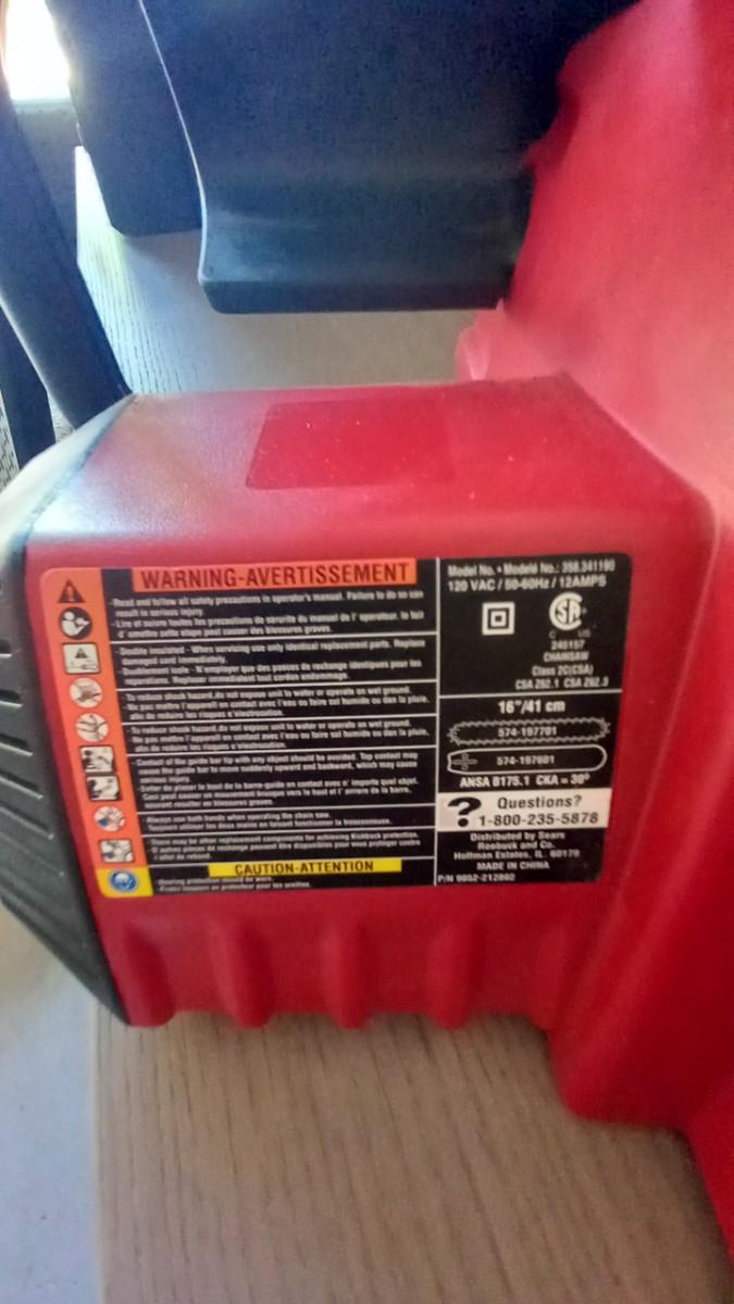 16"/3.5 PEAK HP CRAFTSMAN ELECTRIC CHAINSAW 341190