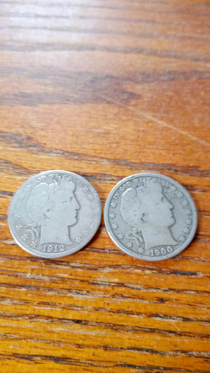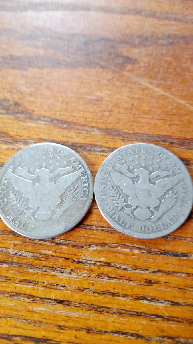 LOT 103 TWO OLD SILVER BARBER HEAD HALVES