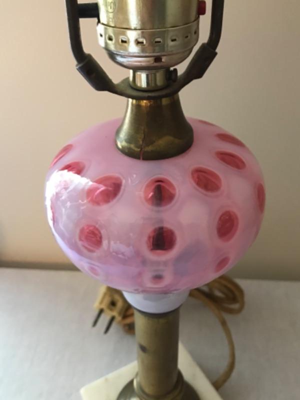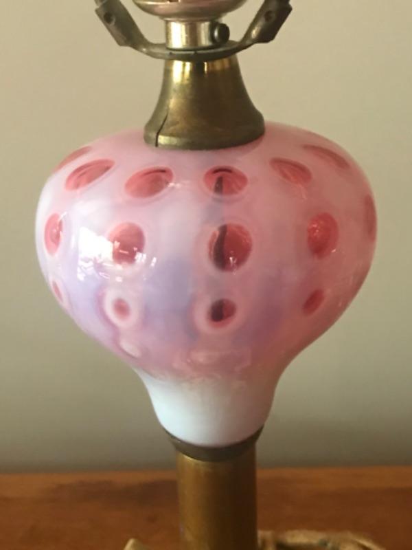 Lot #103 Antique Cranberry Opalescent Coin Dot Lamp