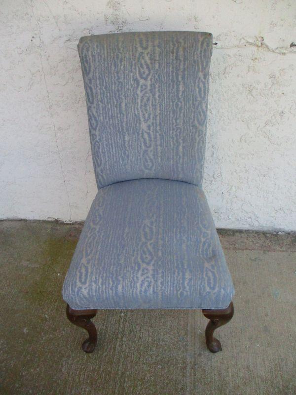 Blue Upholstered Straight Back Queen Anne Style Parlor Chair 2 Of 2 in good condition non-smoking environment
