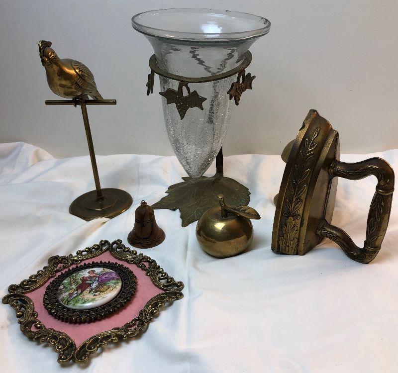 Vase 10" Tall All Fun - brass and decorative brass colored mixed lot