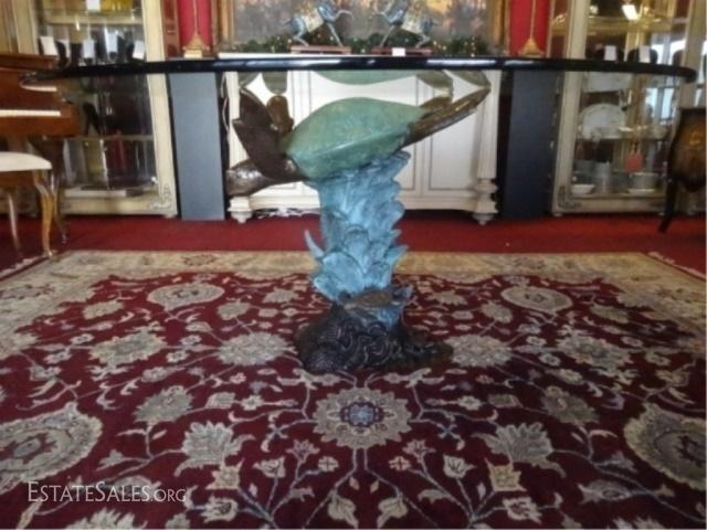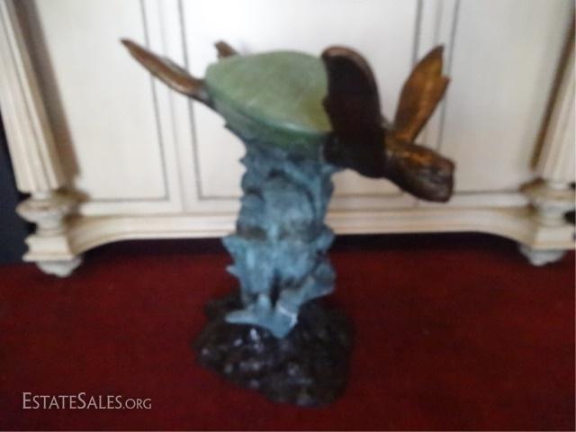 LOT 103: BRONZE SEA TURTLE SCULPTURE, CAN BE USED AS DINING TABLE BASE AS SEEN IN PHOTOS, NEW NEVER USED, GLASS TABLE TOP NOT INCLUDED, BASE MEASTURES 29"H X 27"W, SKU172.03 H900