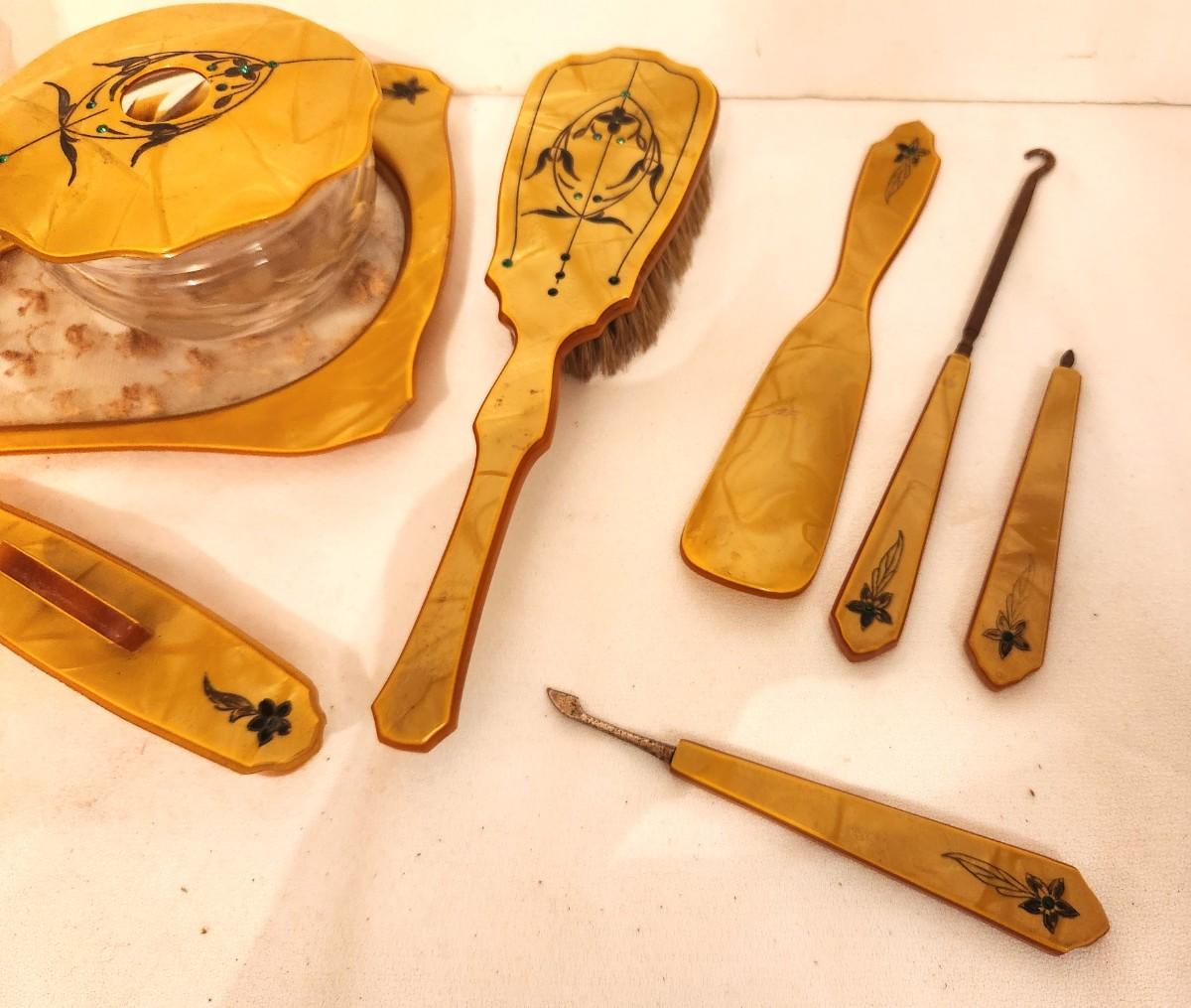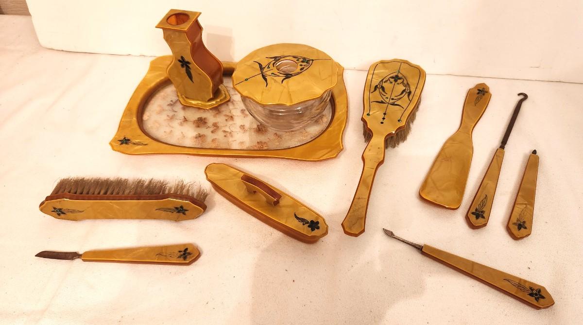 Lot #103 Celluloid Dresser/Vanity Set, ca. 1920 11 pieces