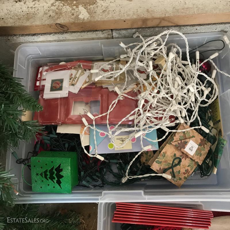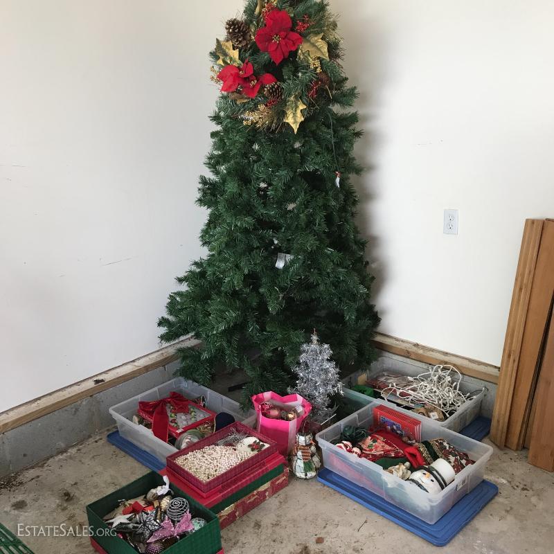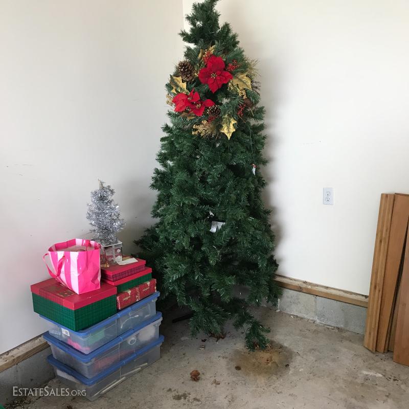 8" slim artificial tree, ornaments, wreath, lights, decor, gift wrapping accessories and more. Mostly retail items. This lot is available for local pick up in Mills River, NC only.