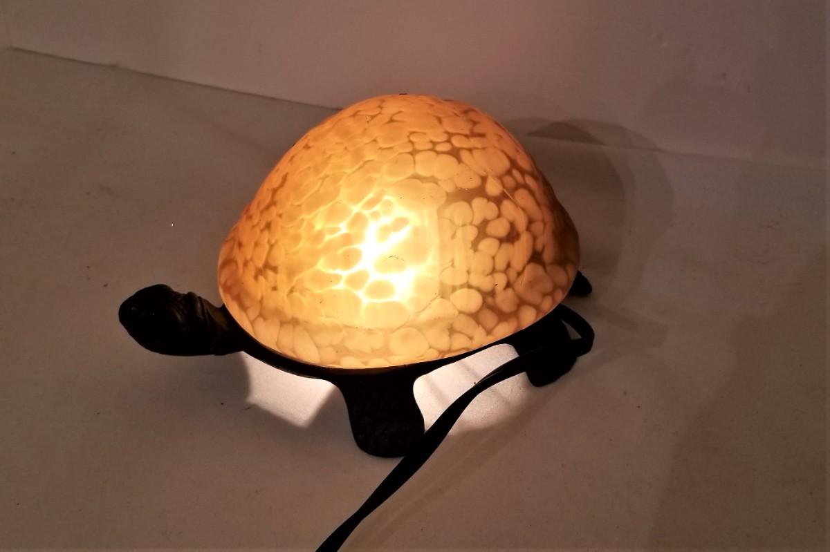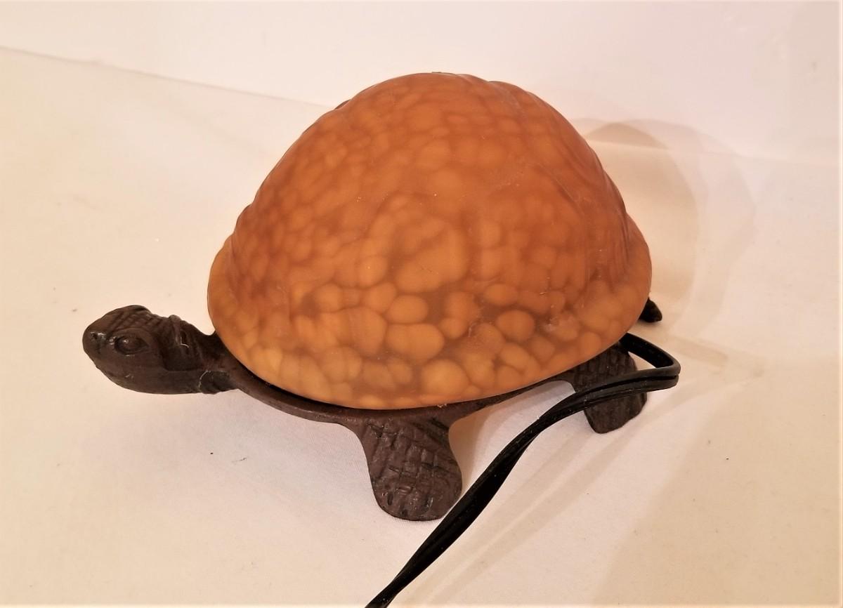 Contemporary, decorative "stained glass" Turtle table lamp. Switch on cord - good working condition. 8" long, 5" tall.