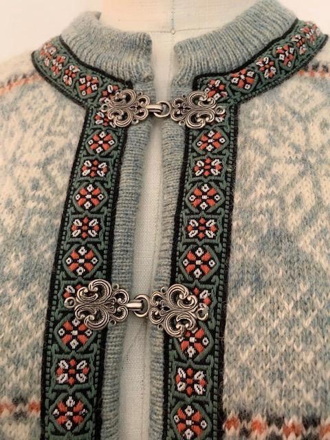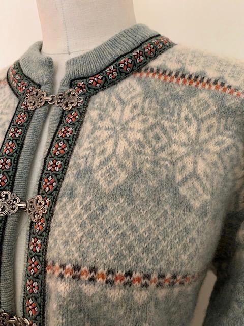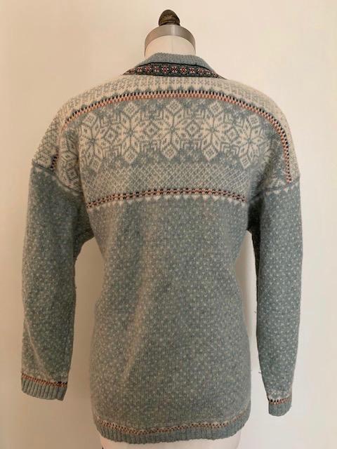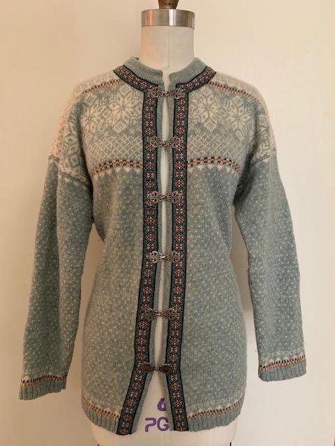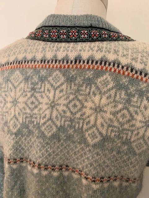 Classic Fair Isle style cardigan sweater. Nordic metal clasps size L
