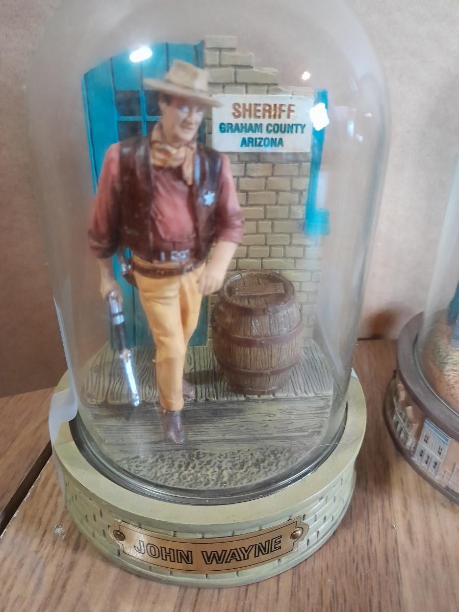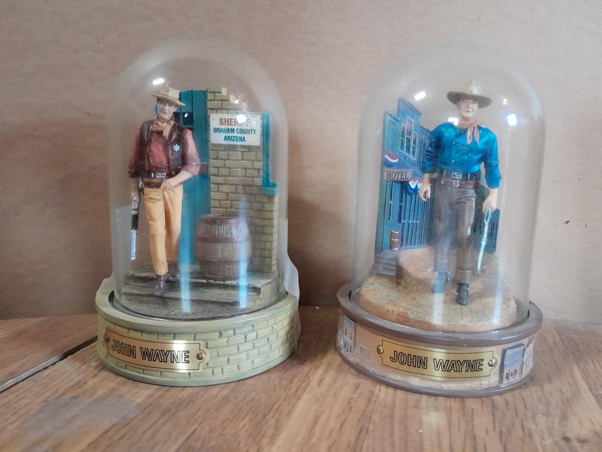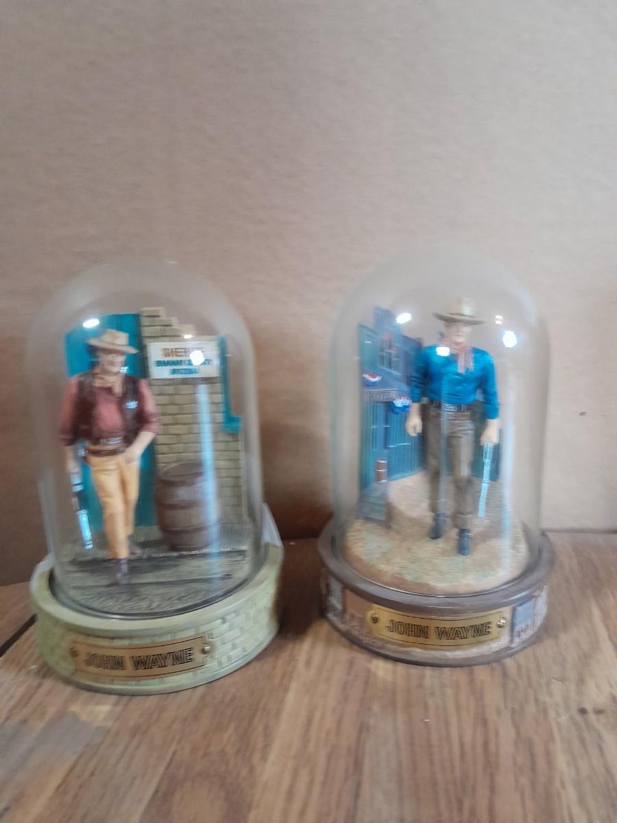 TWO GLASS GLOBED JOHN WAYNE HAND PAINTED LIMITED EDITION NUMBERED SCULPTURES