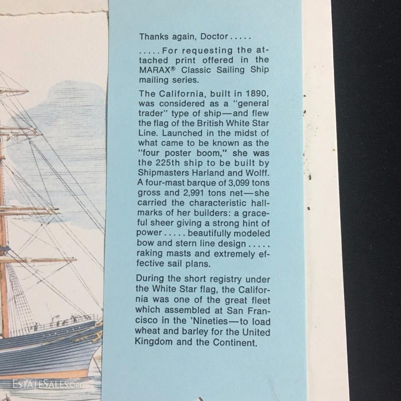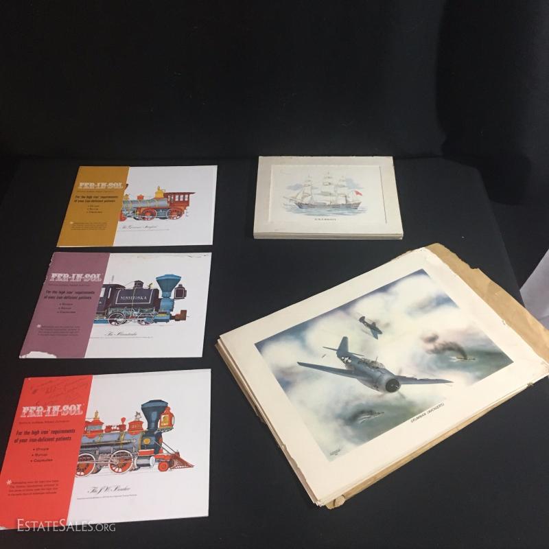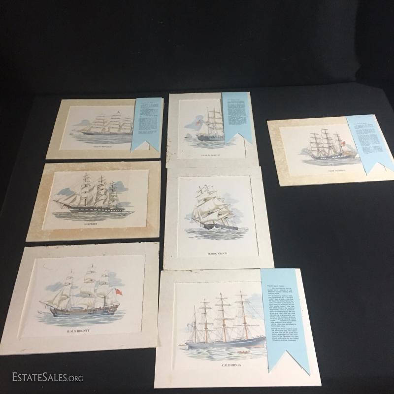 Also includes seven matted classical sailing ships that are frame worthy and were published by the manufacturers of Marax Drug. Some of these have damage.