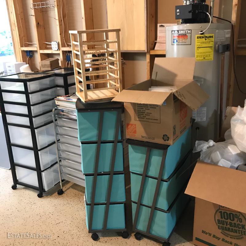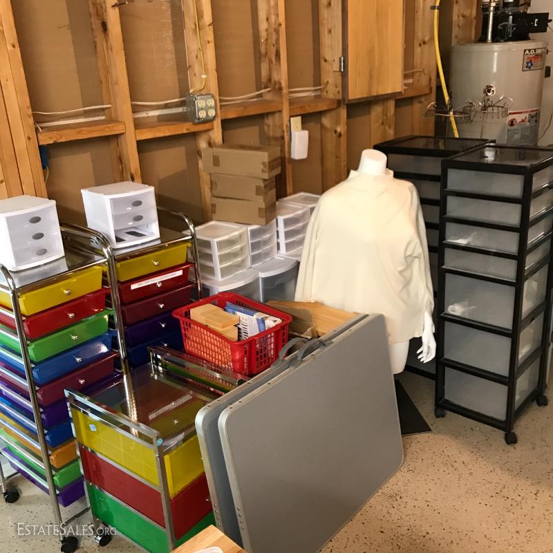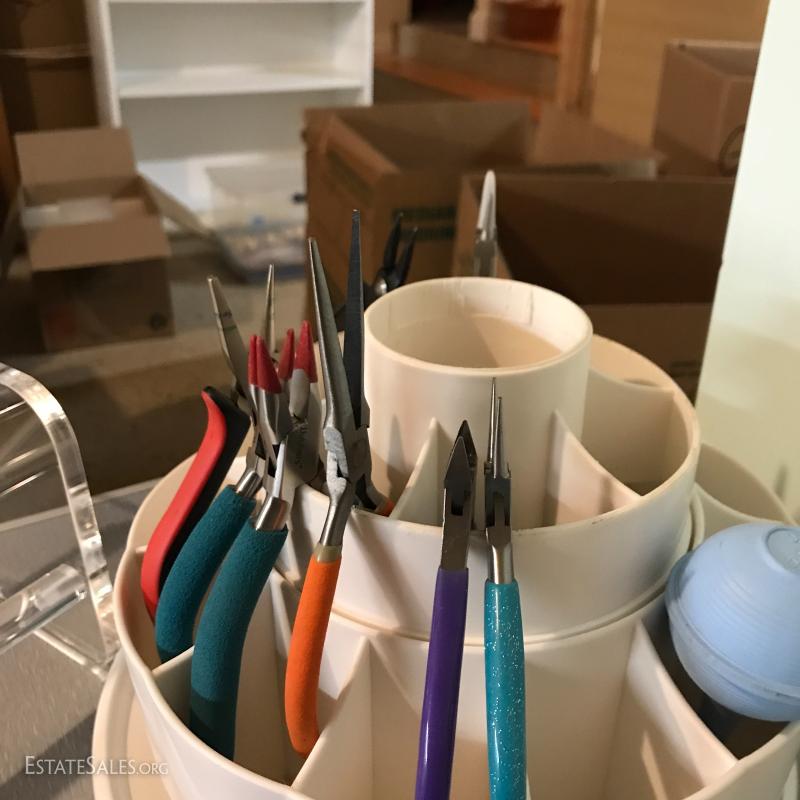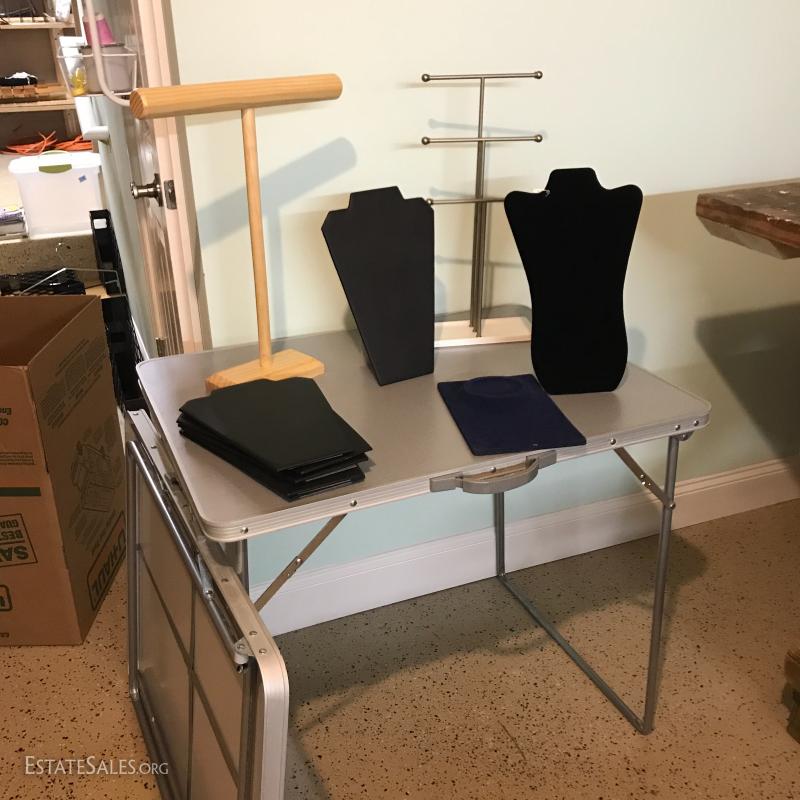 Huge lot for someone interested in jewelry design. Includes lots of storage, mannequin, jewelry display, folding tables, Ottlight, jewelry making tools and books. Please note *this lot is located at a different location in Asheville about 10 min from Bent Creek estate location. If you win this lot please contact our staff 828-338-8448 to arrange pick up. No shipping.
