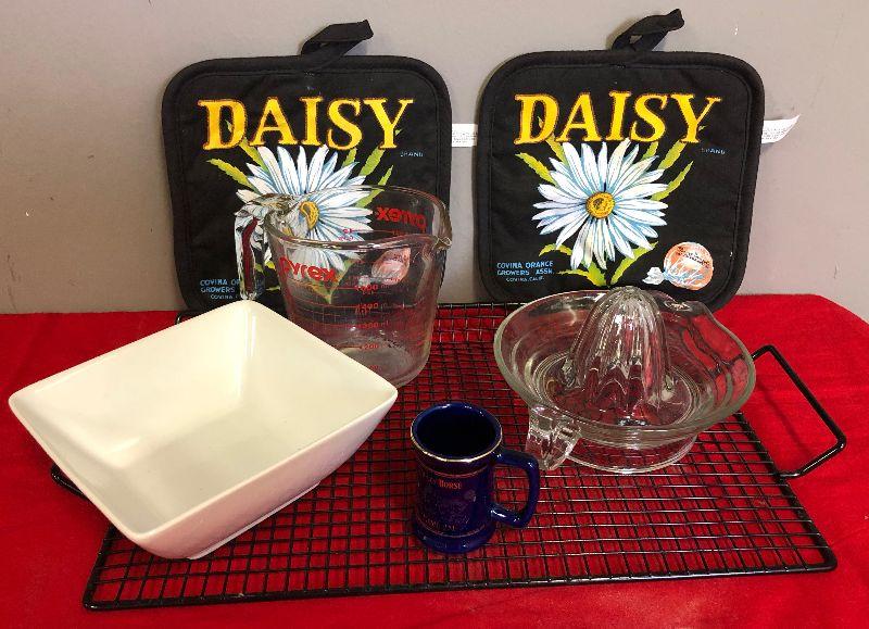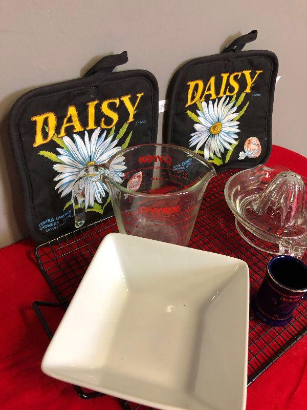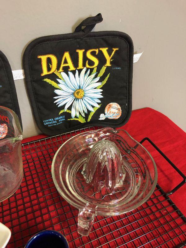 Lot 103 Kitchen Lot - measure cup, juicer, hot pads