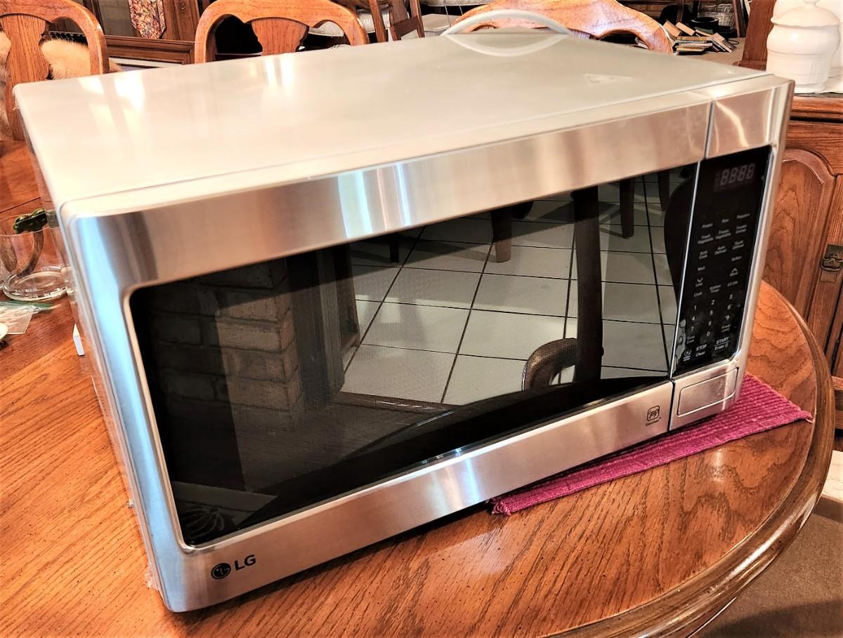 Nice LG Stainless Steel Microwave - works fine. 21.5" across, 15" deep, 12" tall. Model LCRT 1513ST. Has glass insert, etc.
