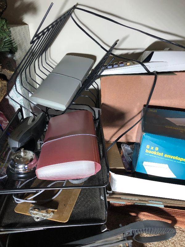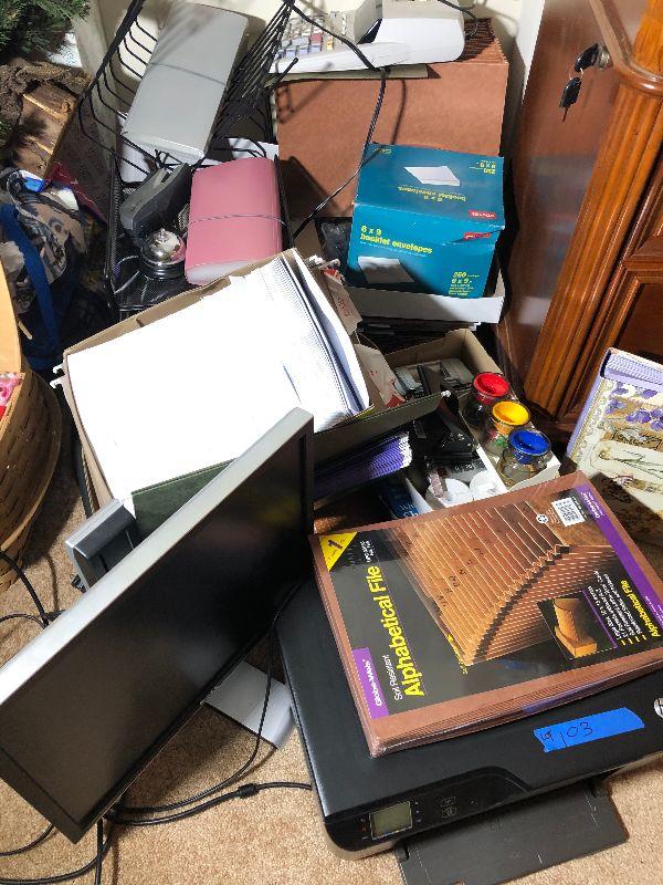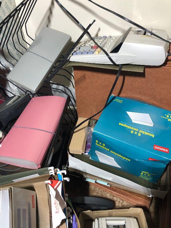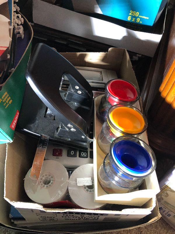 HP Desk Jet 3520, Dell 19" Monitor, adding machines, X-Acto paper cutter and other miscellaneous items
