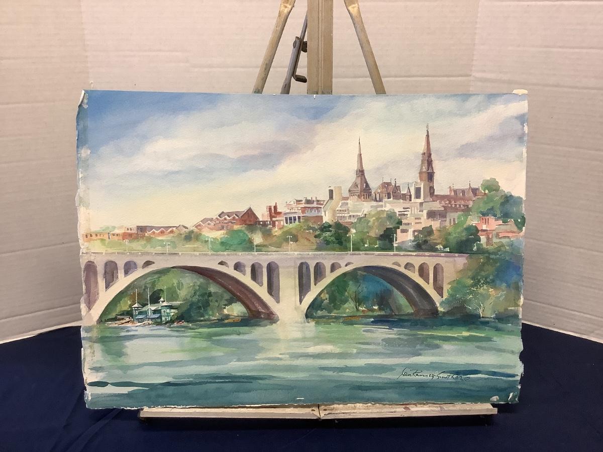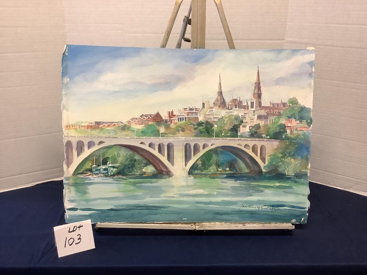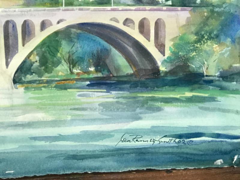 E - 103 Signed Original Watercolor by Jean Ranney Smith “ Daytime Bridge Scene “