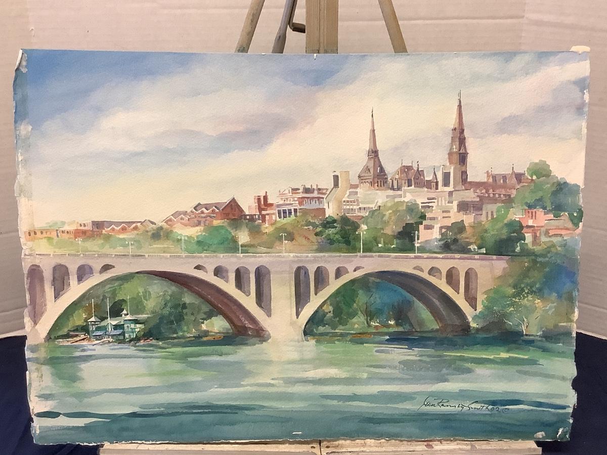 Jean Ranney Smith original watercolor “Daytime Bridge Scene”