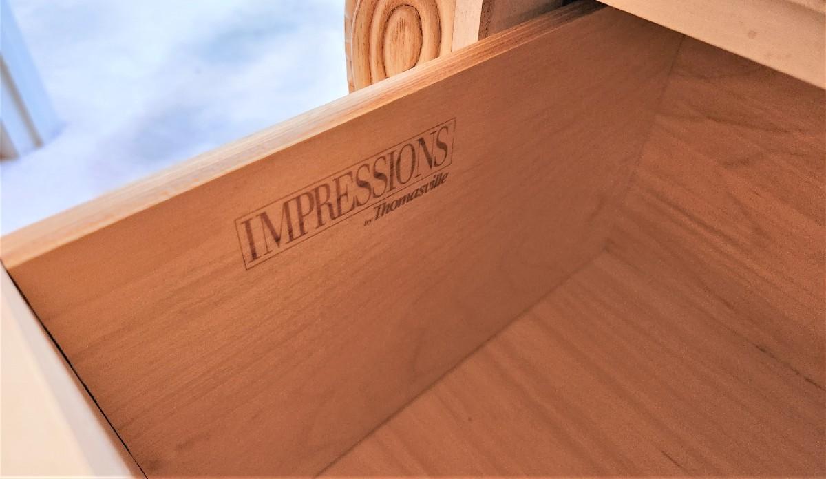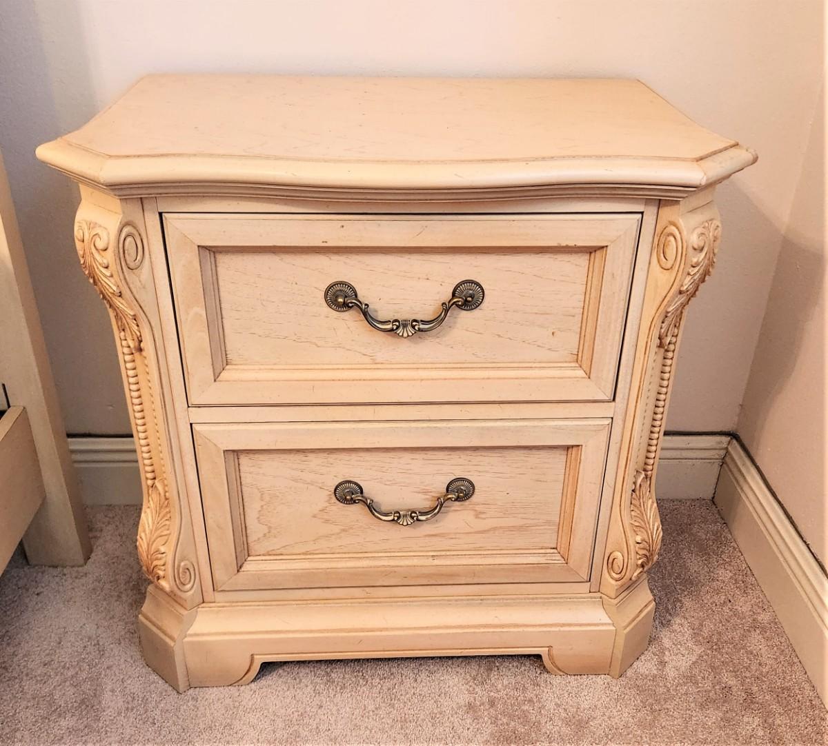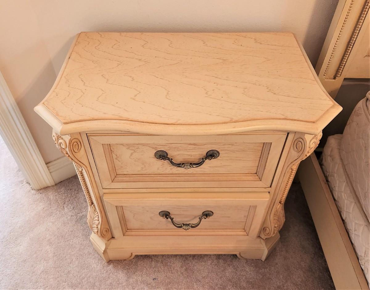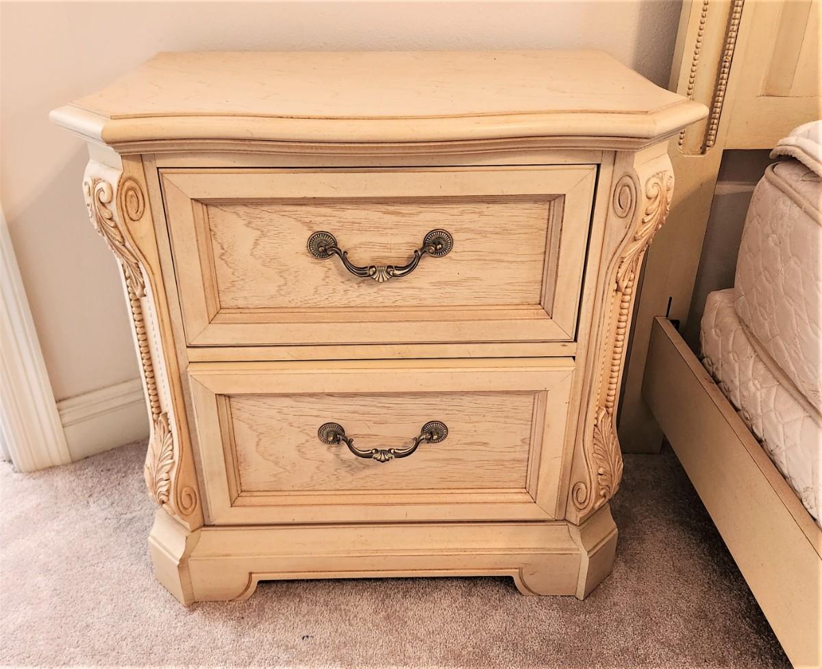 These great contemporary Thomasville nightstands match the bed in Lot #102. Both have 2 drawers, each is 29" across, 17" deep, and 27" tall. Both in good condition. You get both nightstands.