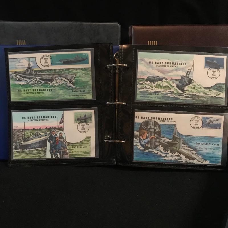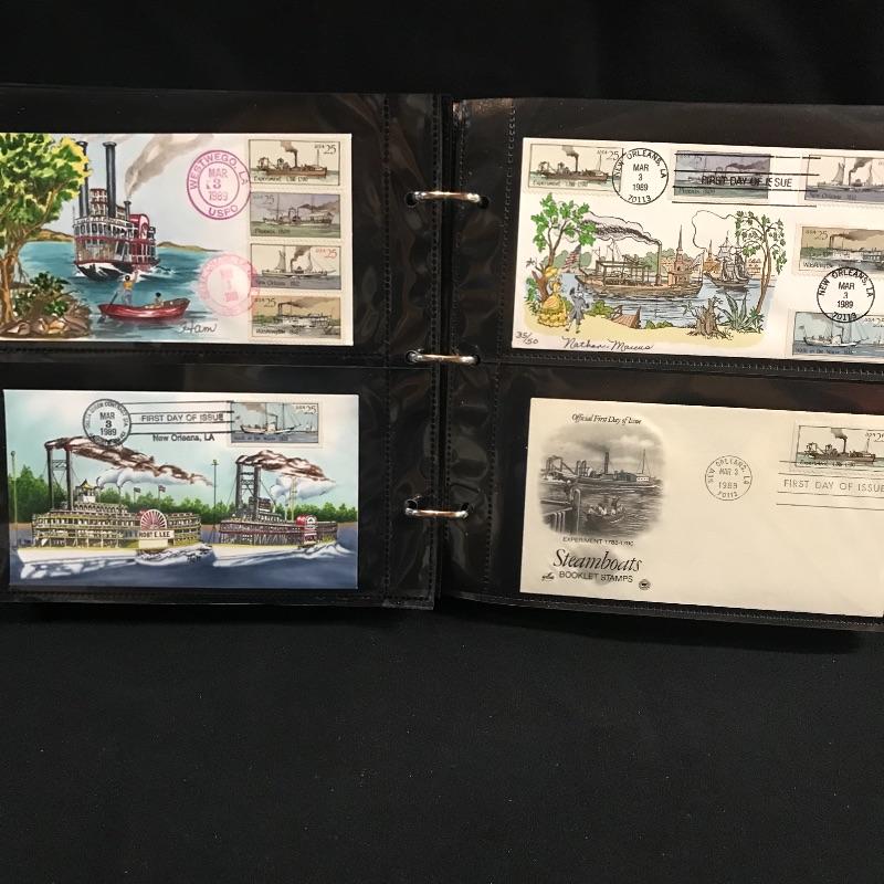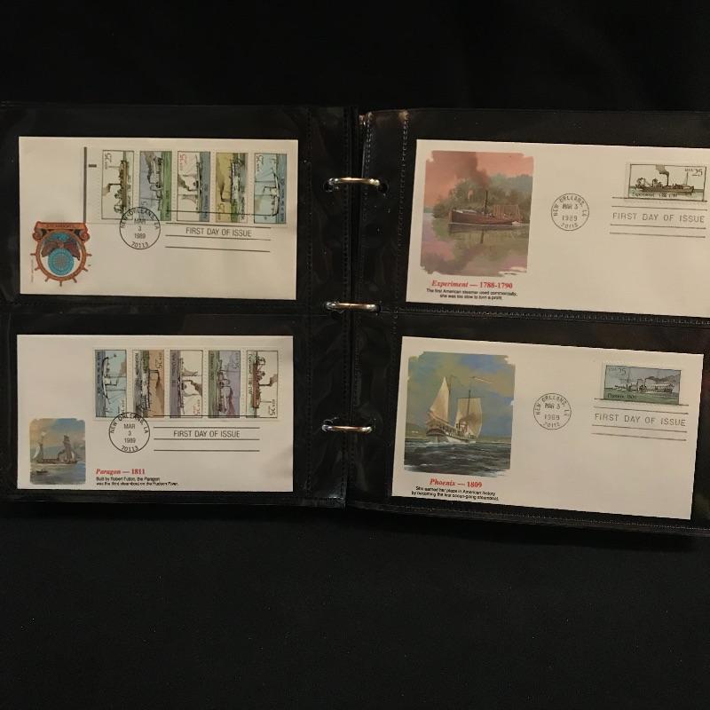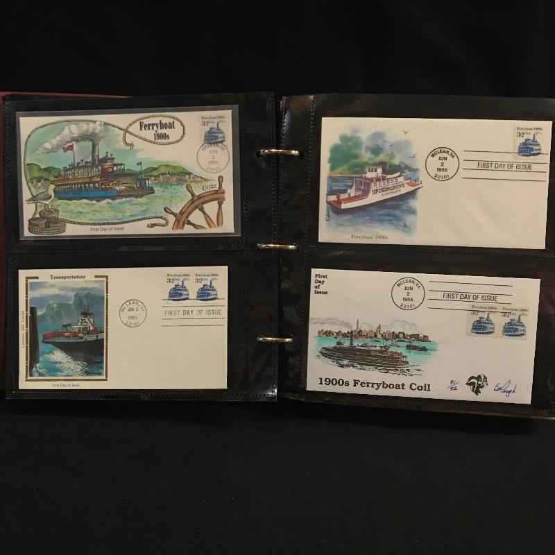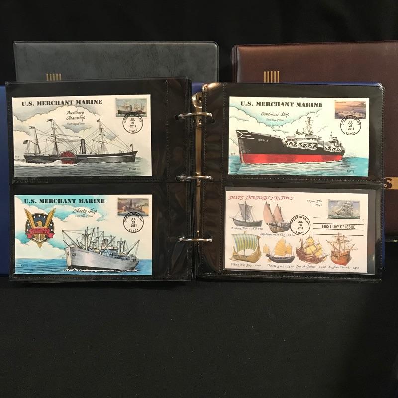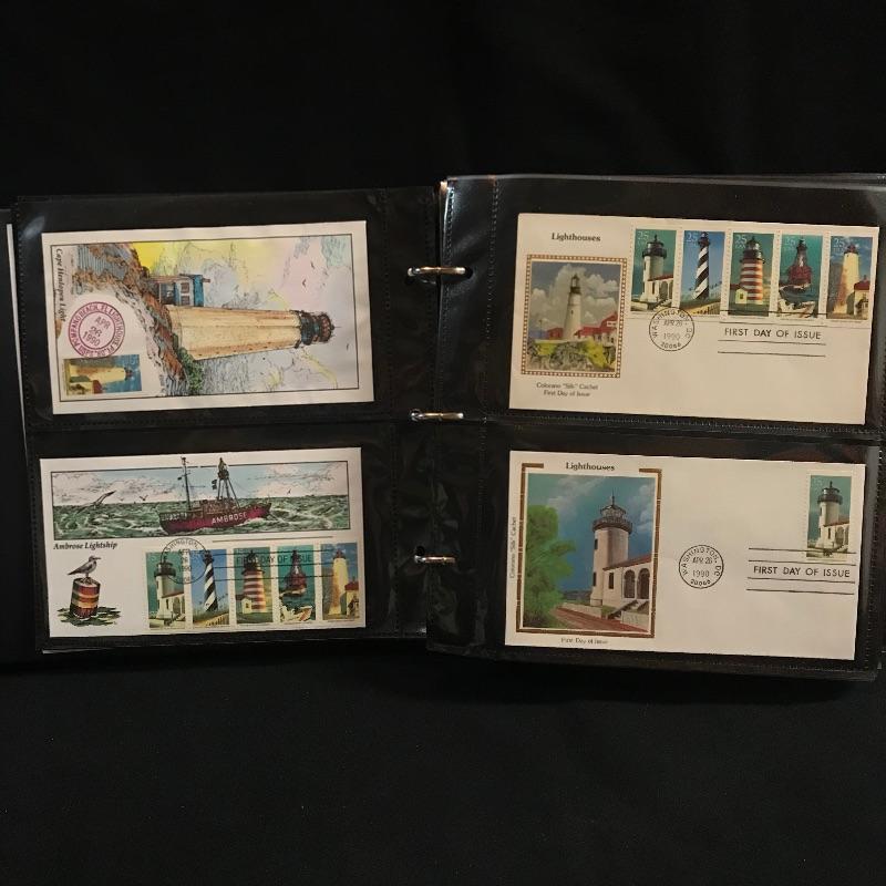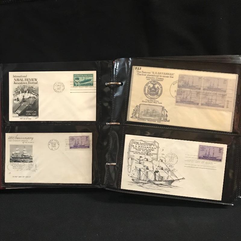 Four mostly full Scott/SuperSafe binders full of sea and river genres, most are 1st day covers. One full book plus some of lighthouses, large sections of submarines, ships, riverboats and more! Most are from the late 1900s, but stamps canceled from As early as the “˜40s can be found.