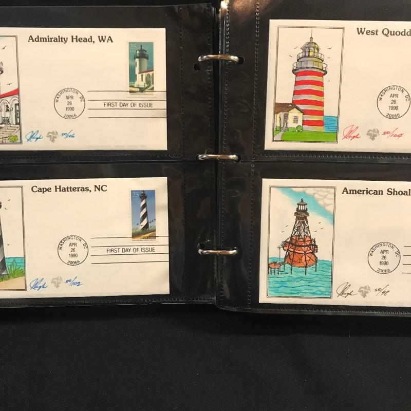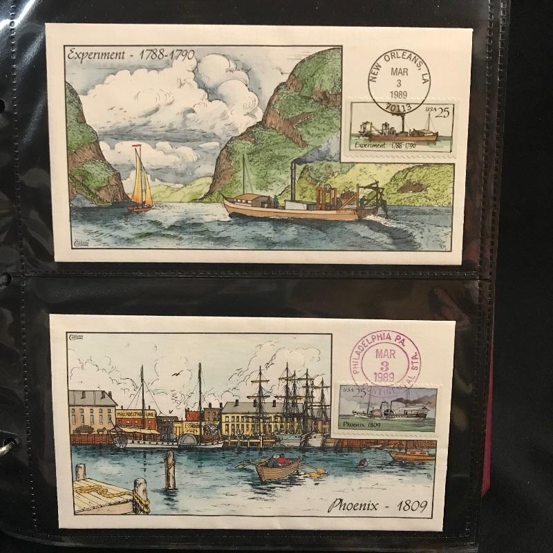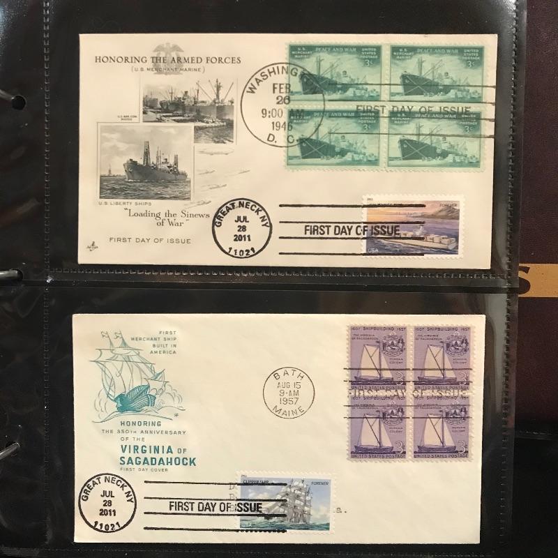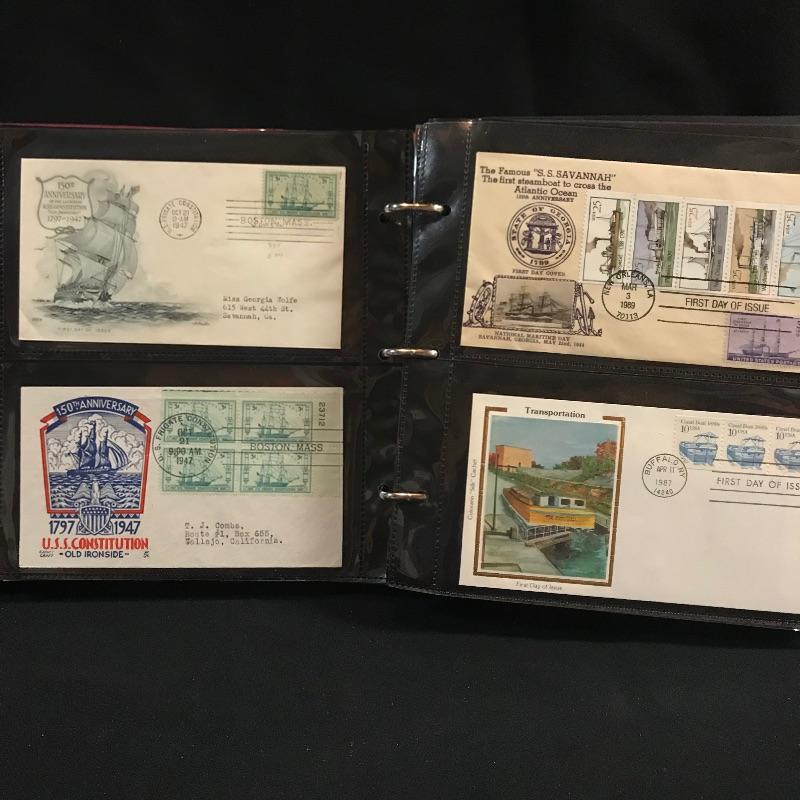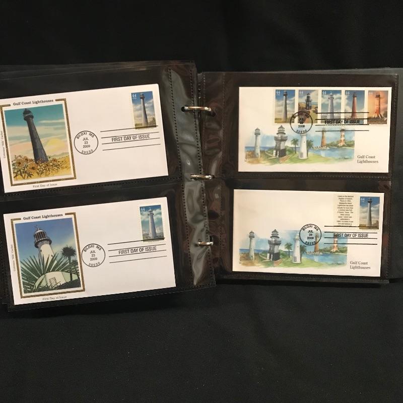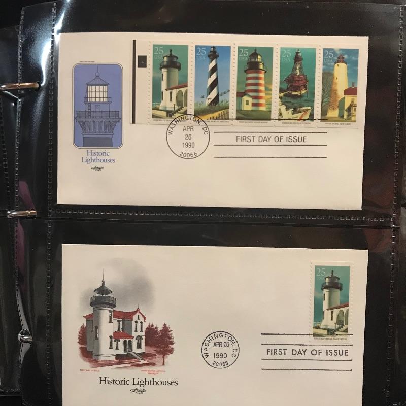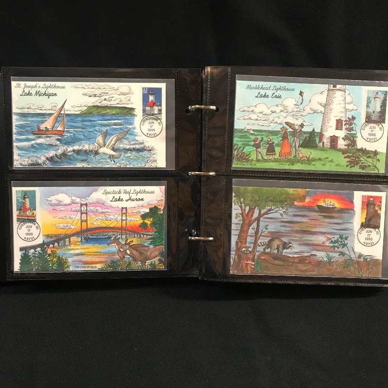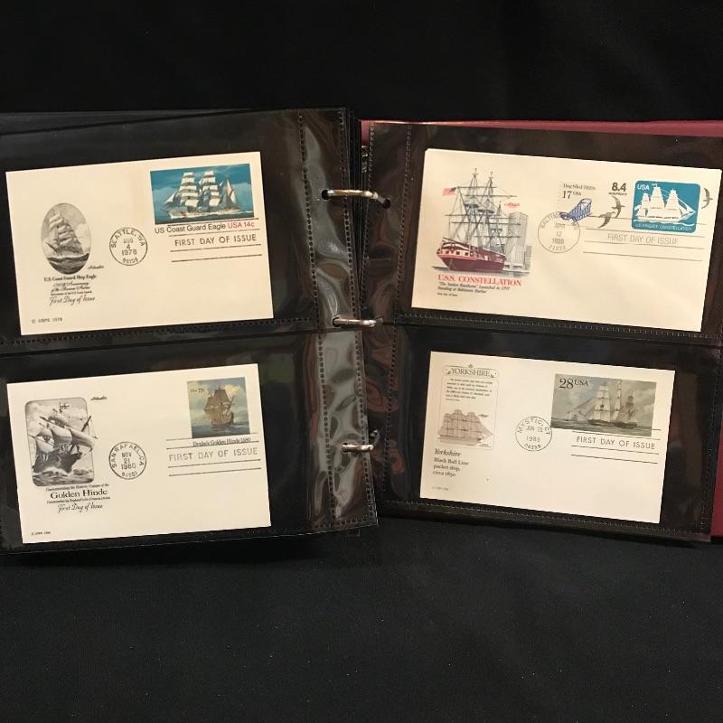 Four mostly full Scott/SuperSafe binders full of sea and river genres, most are 1st day covers. One full book plus some of lighthouses, large sections of submarines, ships, riverboats and more! Most are from the late 1900s, but stamps canceled from As early as the “˜40s can be found.