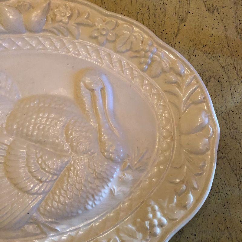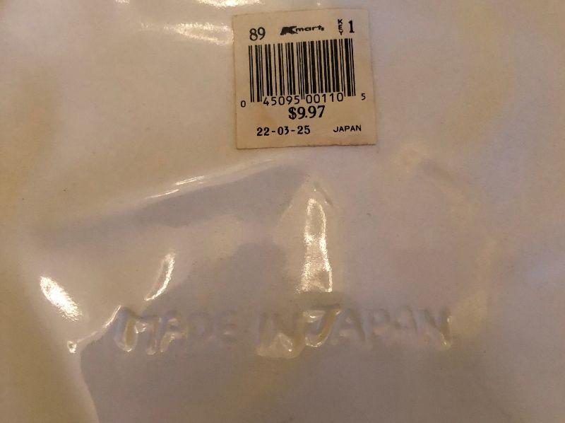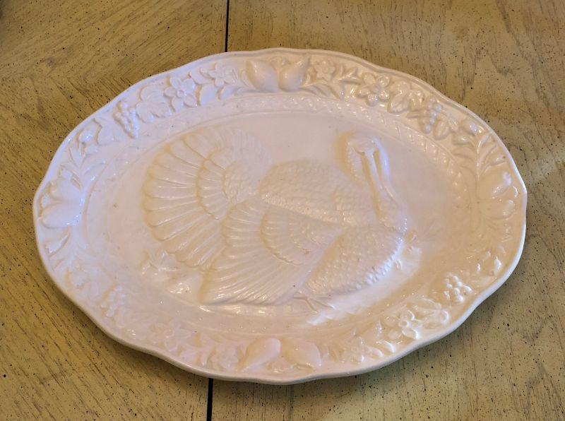 This is a large white, ceramic platter that was Made in Japan. It is 17.75" at the longest dimension.