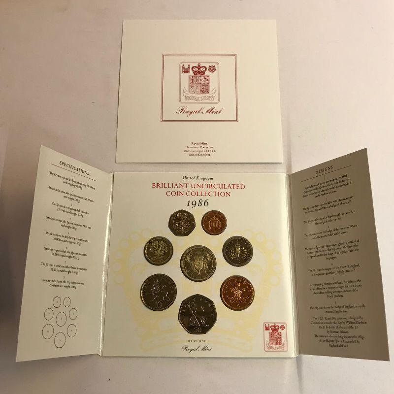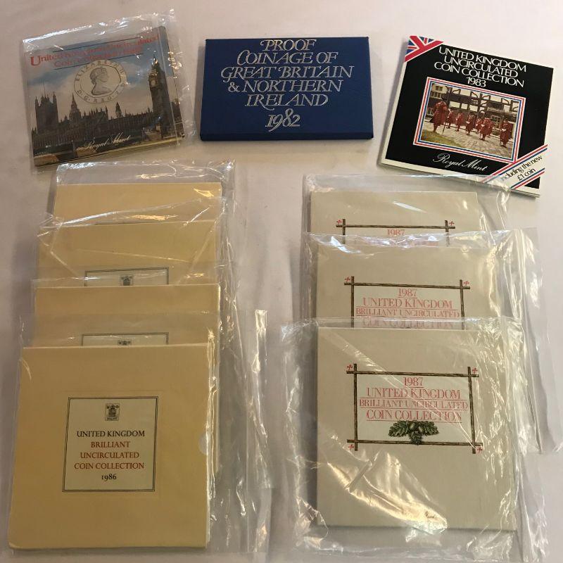 UK Mint Sets includes One 1982, One 1983, Four 1986 and Three 1987 Mint Sets, and One 1982 Great Britain and Northern Ireland Proof Coin Set.