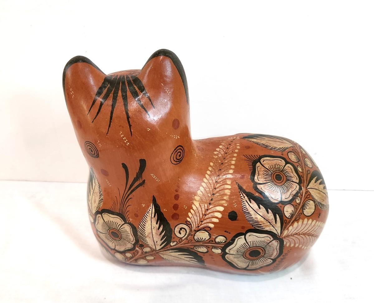 Vintage Tomala pottery Red Clay Cat - Mexico - Folk Art. 9" tall at tallest point, good vintage condition.