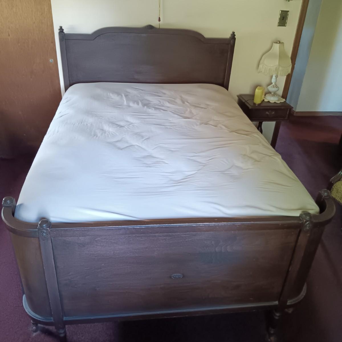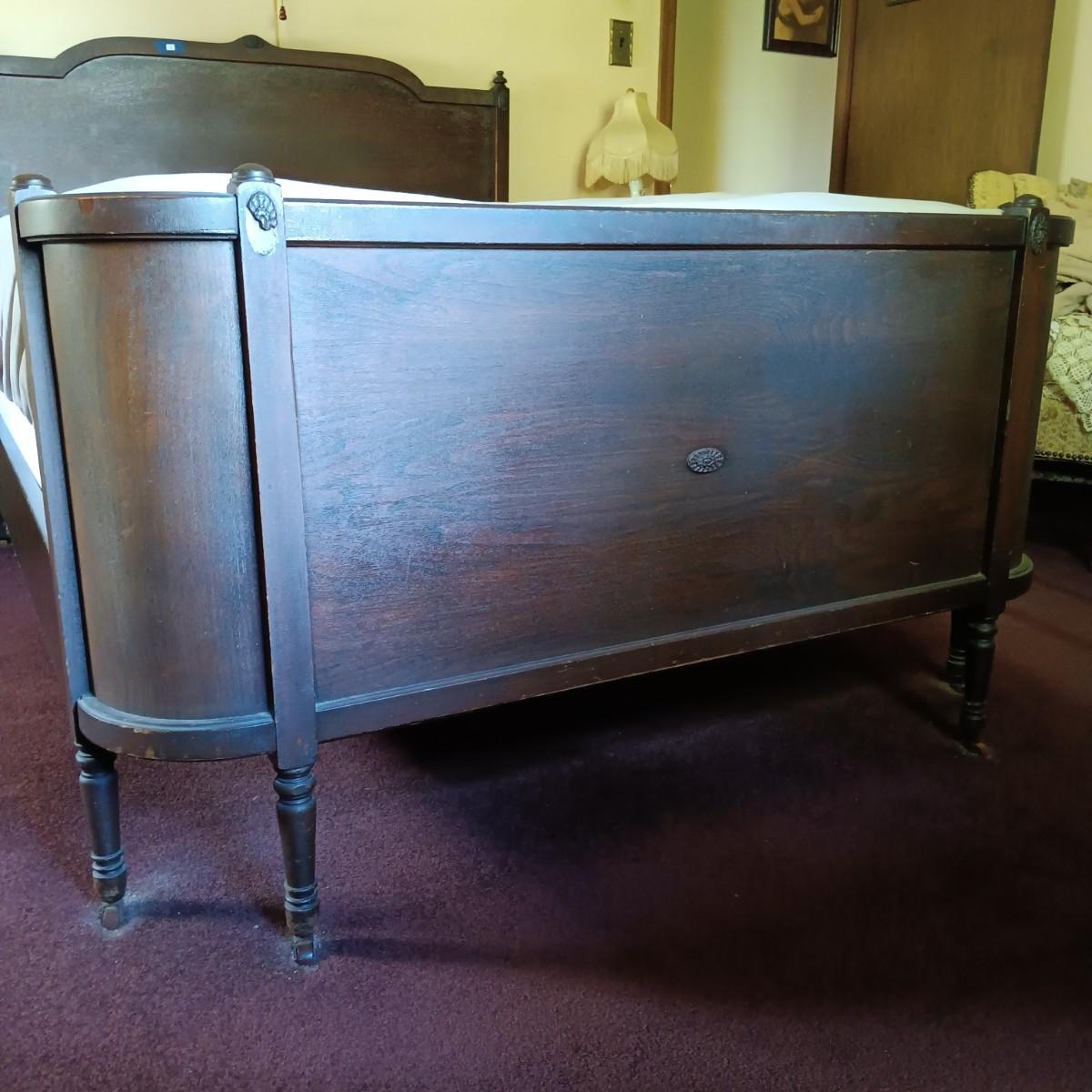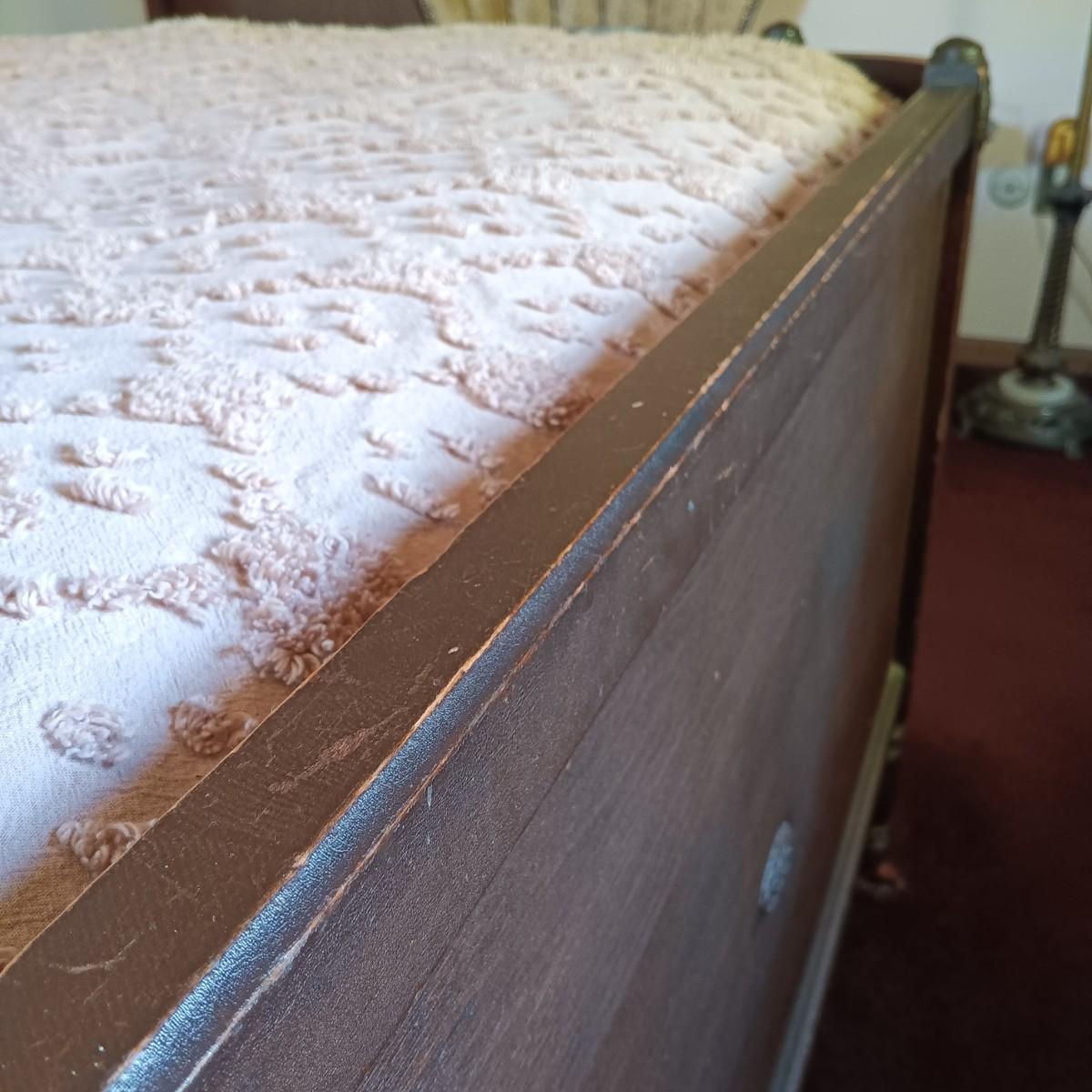 LOT 6: Vintage Wood Bed Frame with Curved Footboard