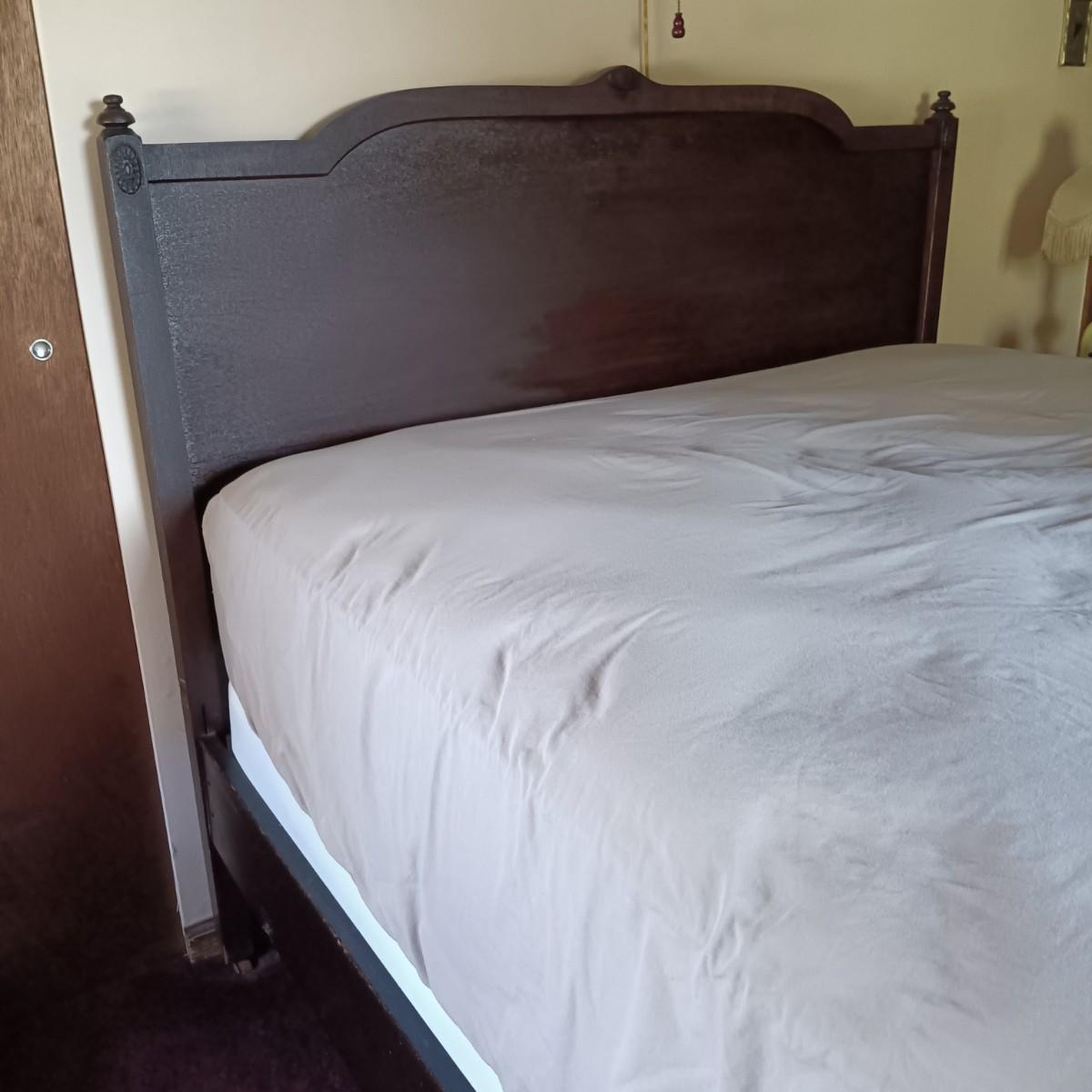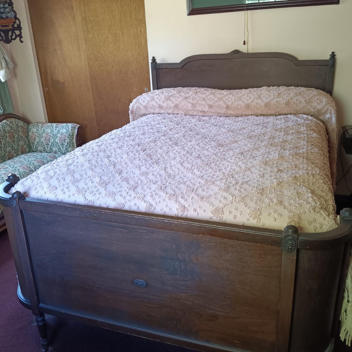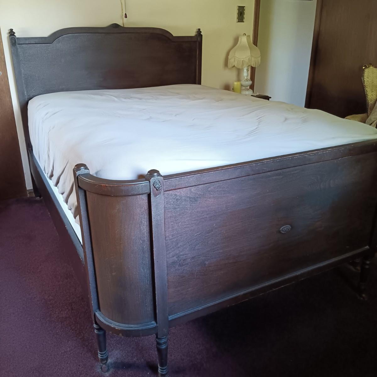 LOT 6: Vintage Wood Bed Frame with Curved Footboard