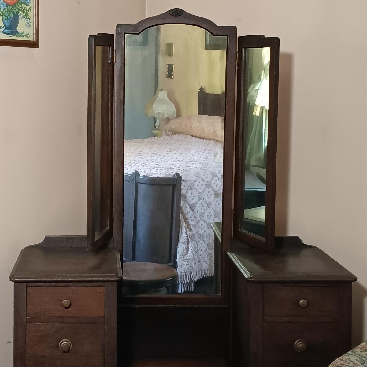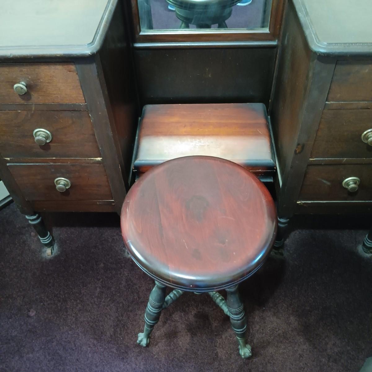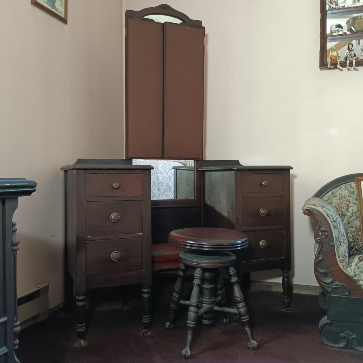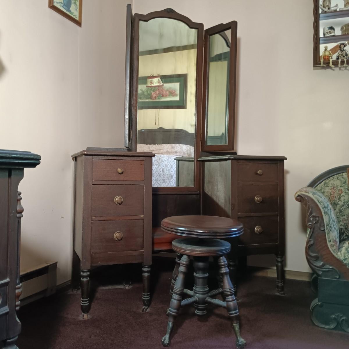 LOT 10: Tri-Fold Mirror Vanity with Piano Stool