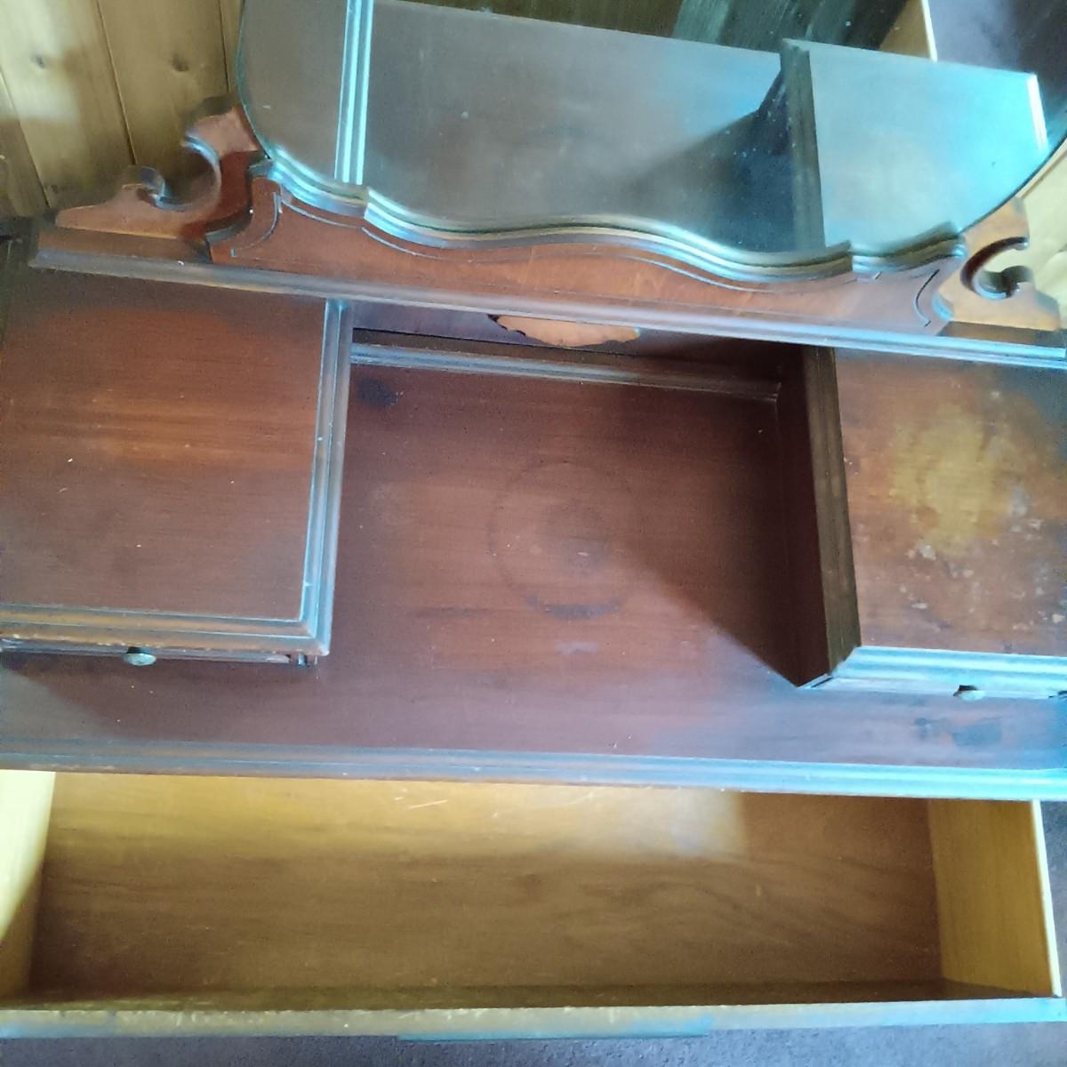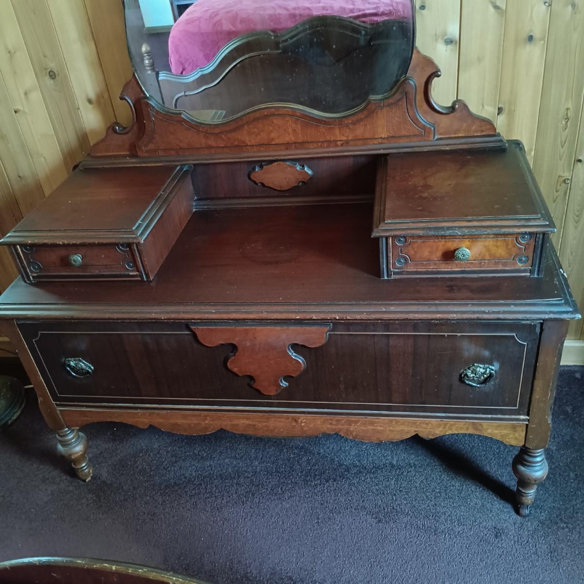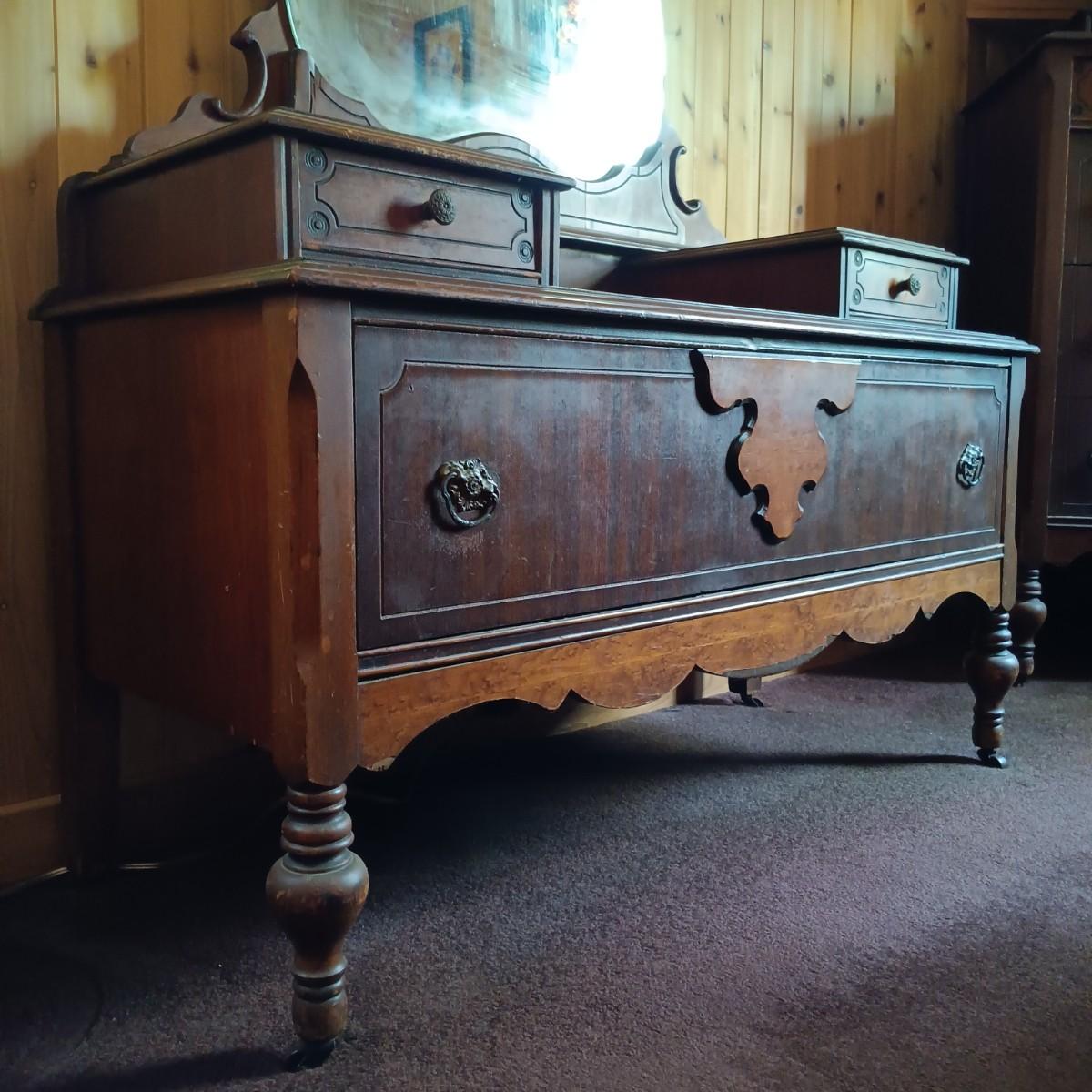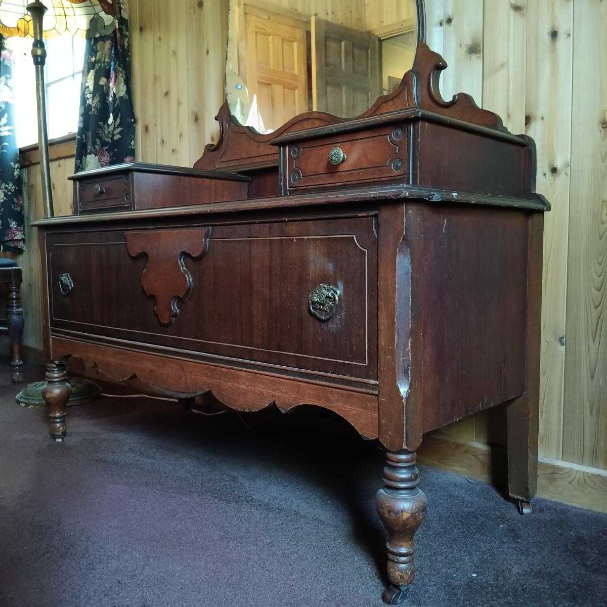 LOT 17: Vintage Vanity & Mirror- Dove Tails & Wooden Casters, Miron Furniture Co., Plainfield NJ