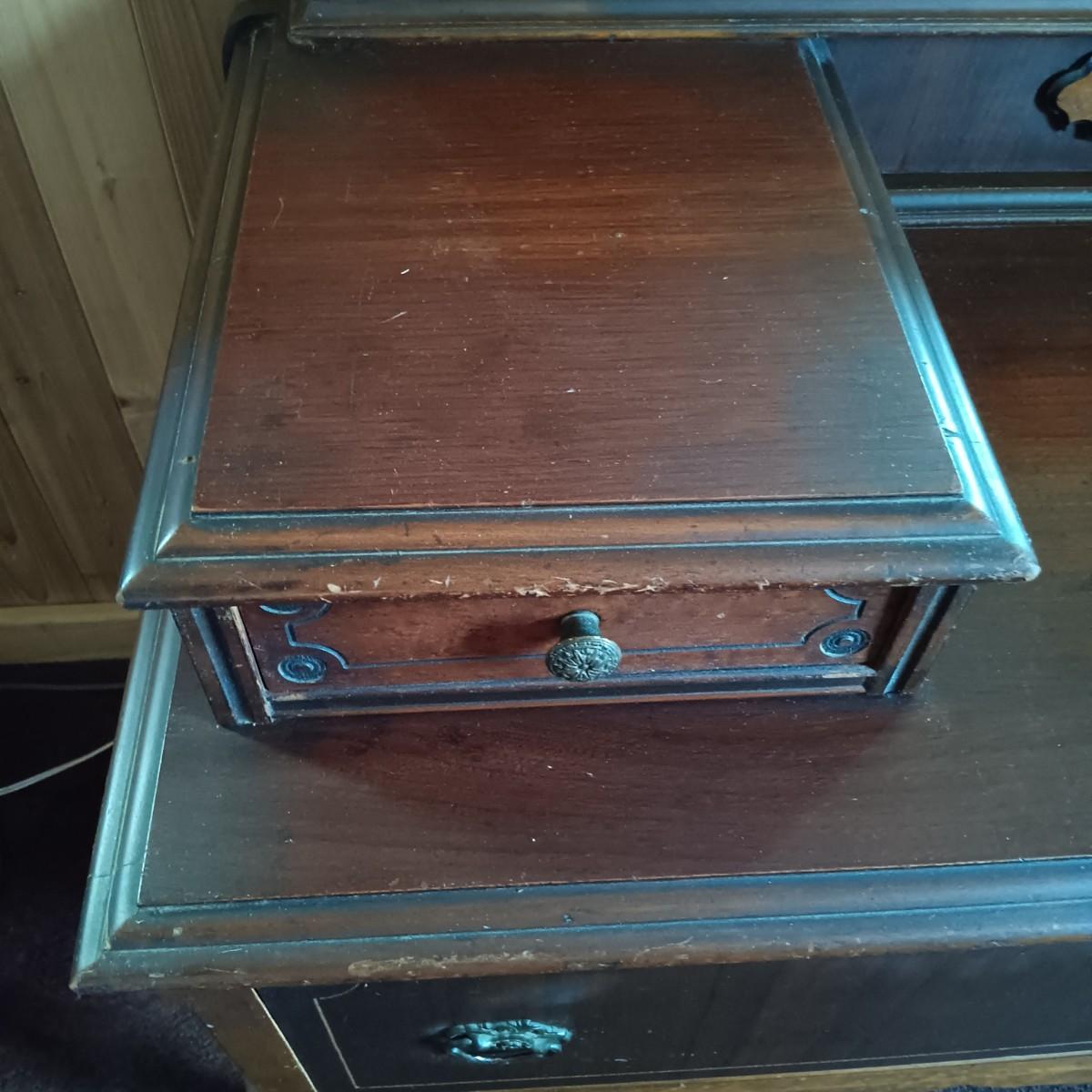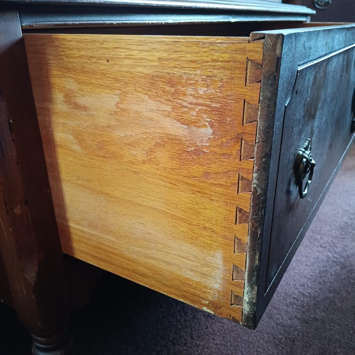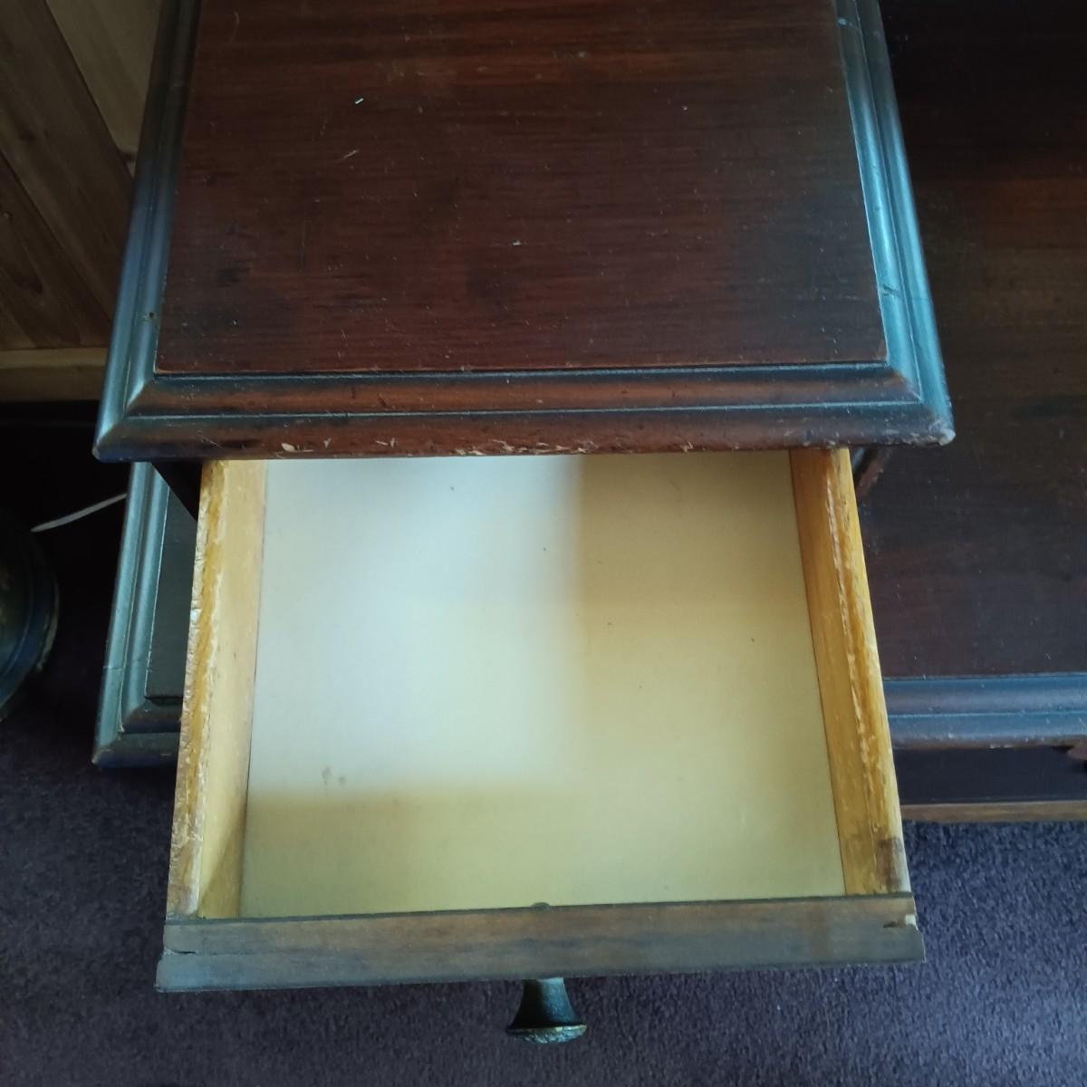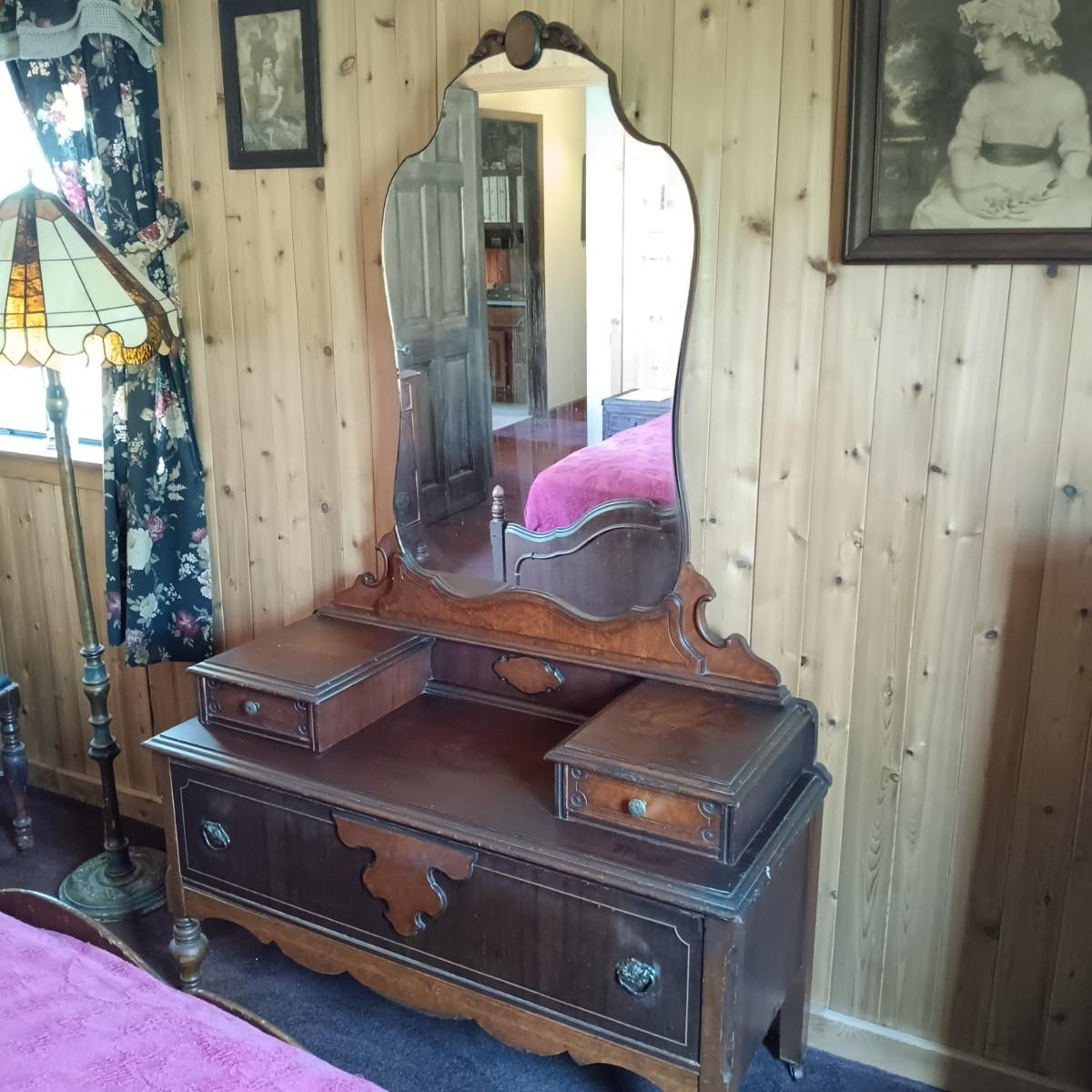 LOT 17: Vintage Vanity & Mirror- Dove Tails & Wooden Casters, Miron Furniture Co., Plainfield NJ