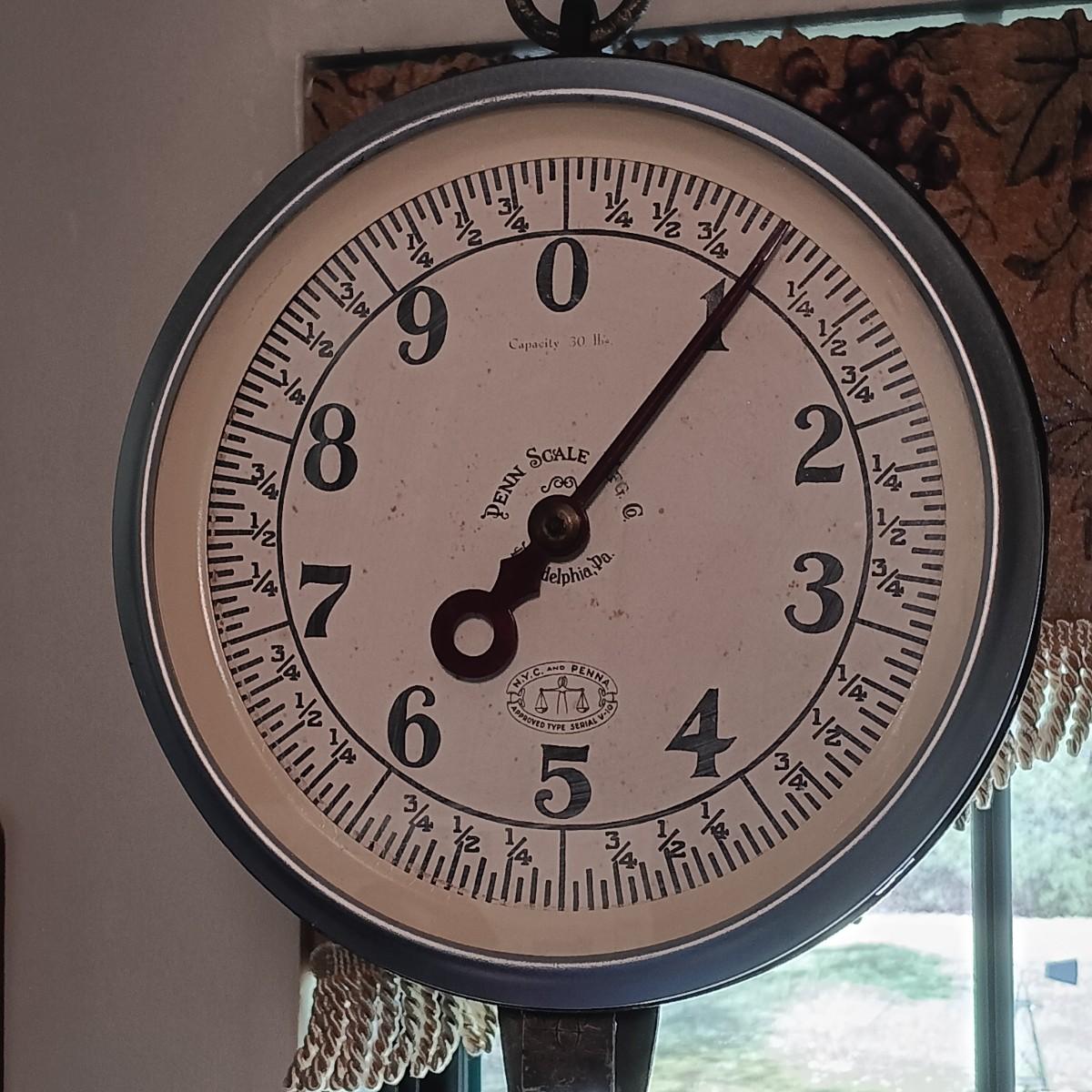 LOT 24: Hanging Penn Scale Mfg., Philadelphia PA. 30-lb Capacity W/Faux Vegetables
