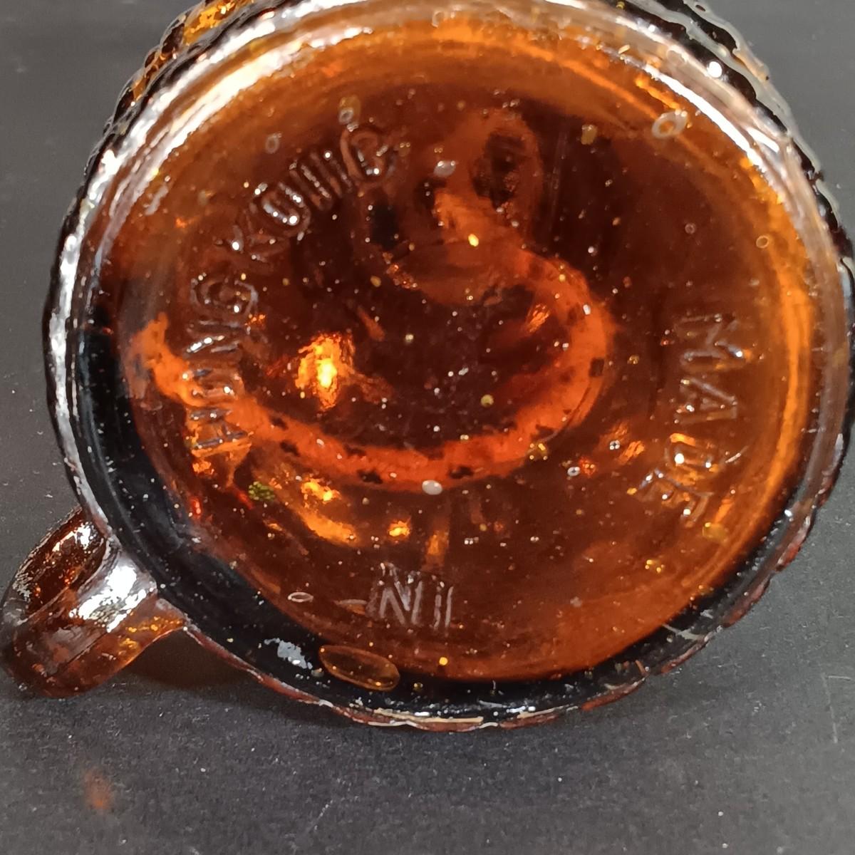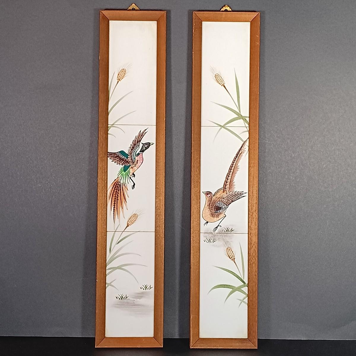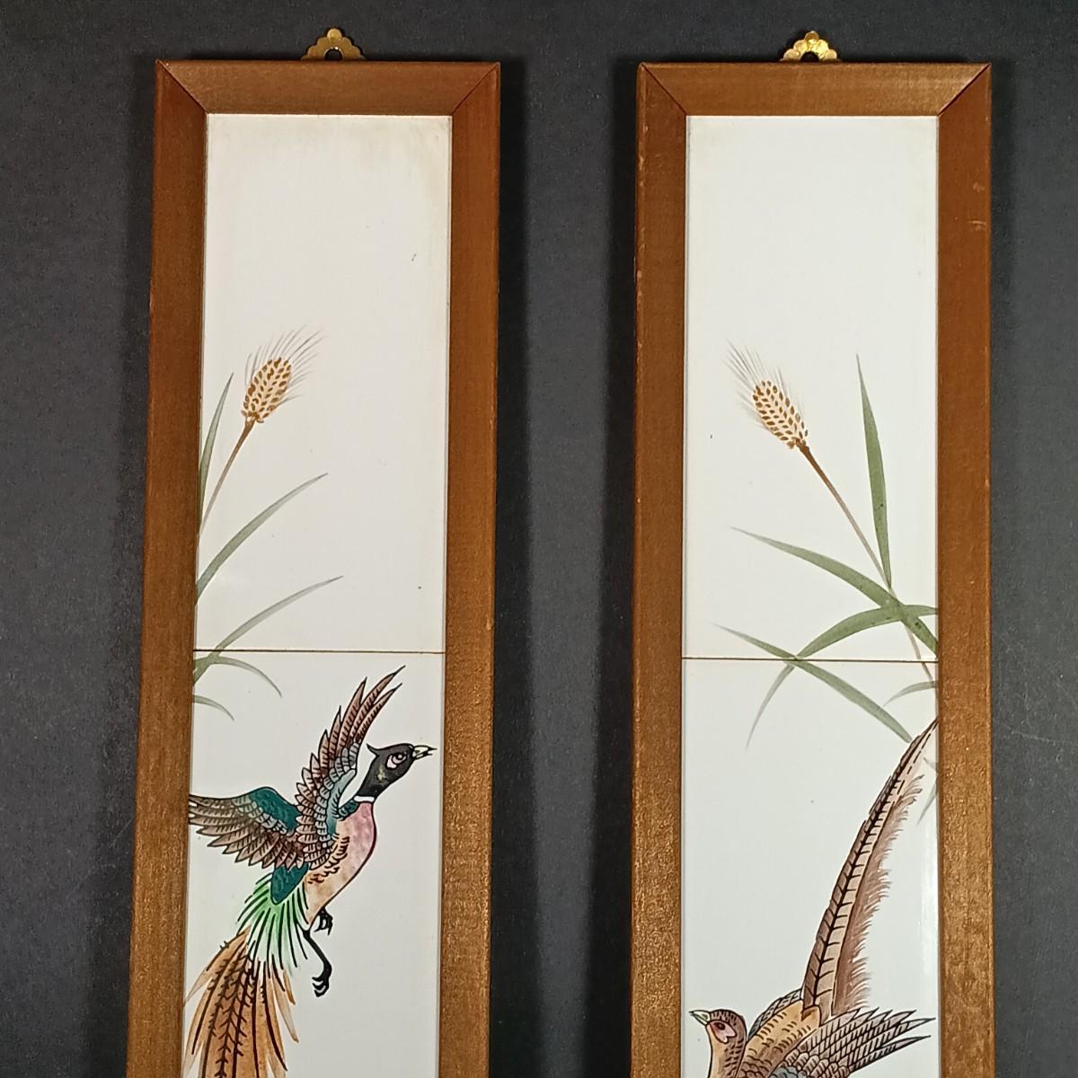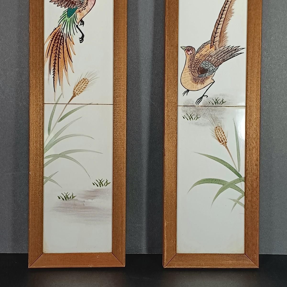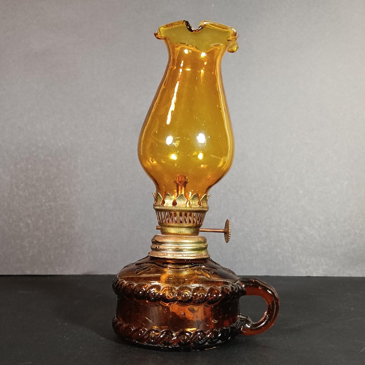 LOT 30: Vintage Amber Hurricane Lamps & Painted Framed Tiles