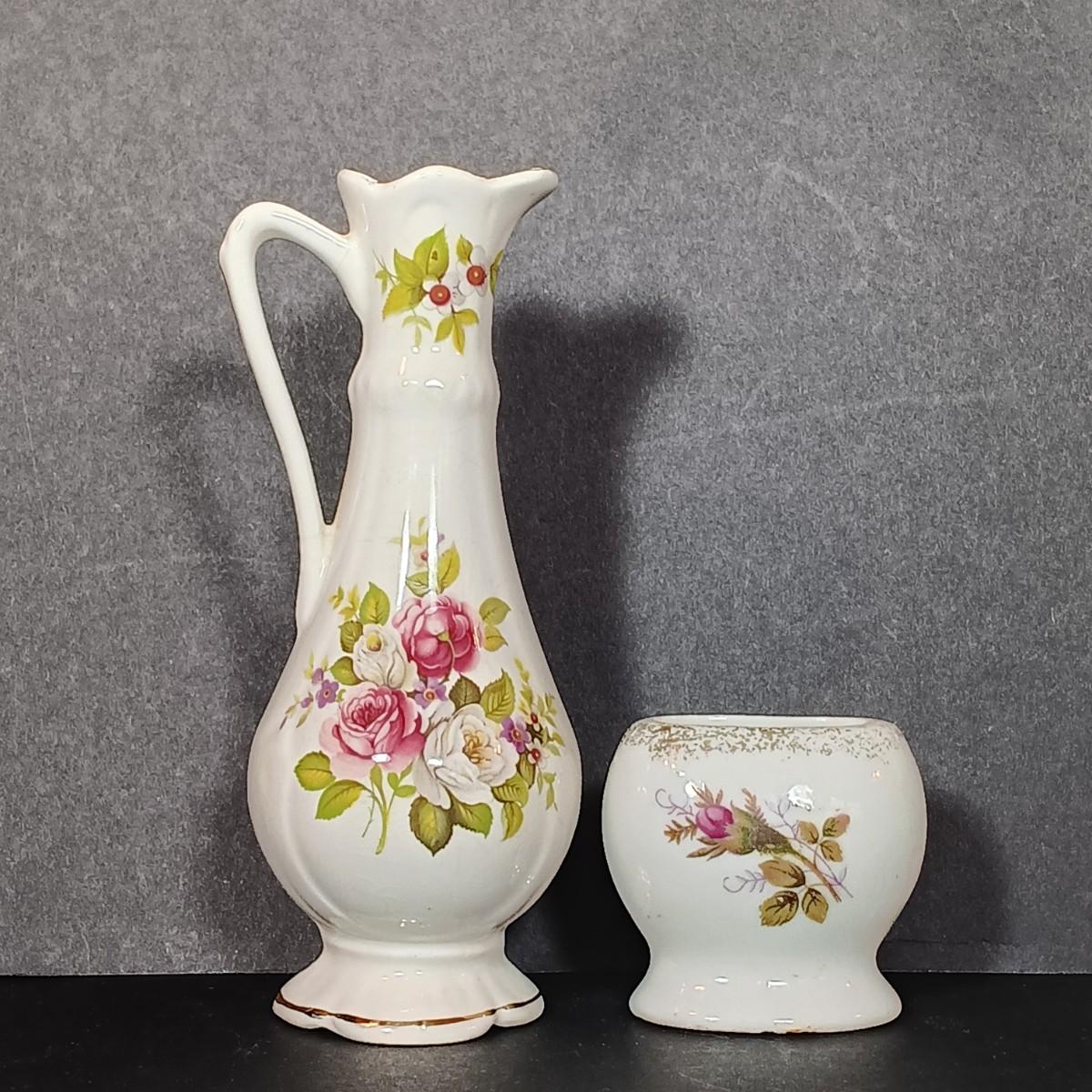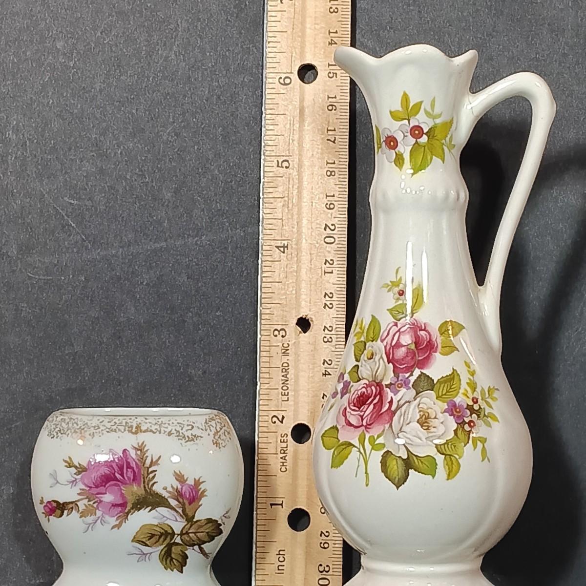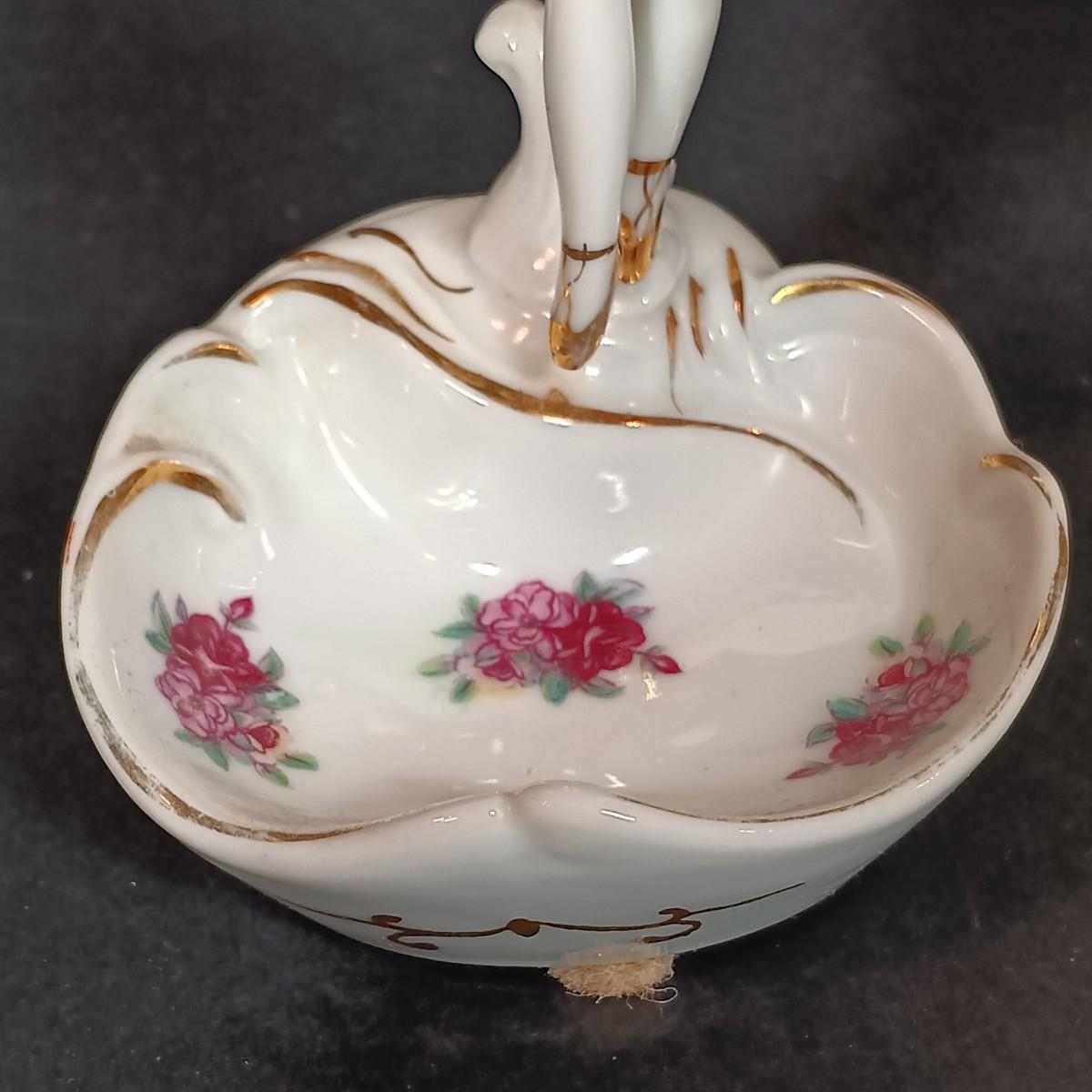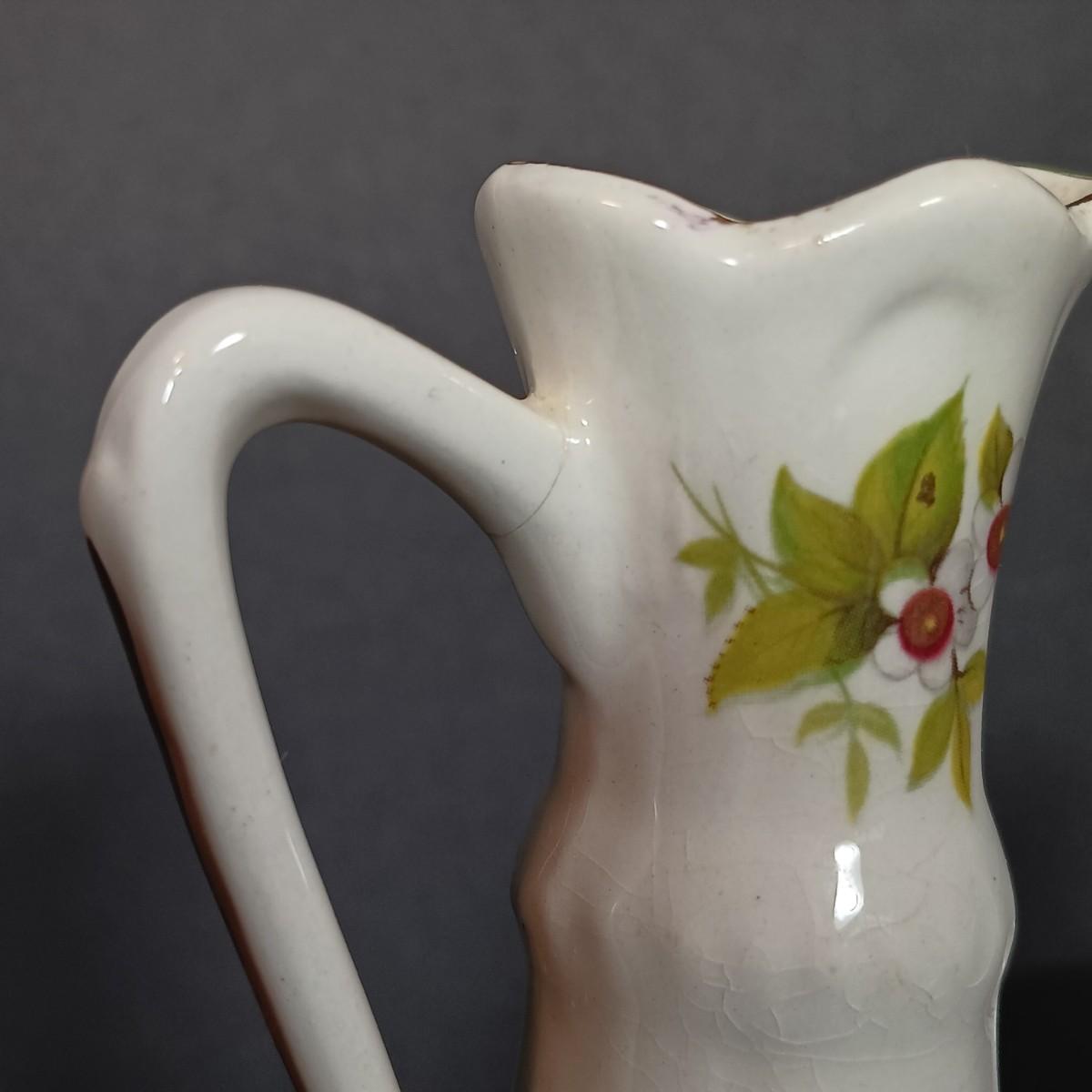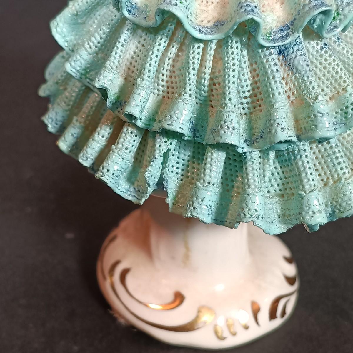 Dresden Figurines have condition issues as pictured. Porcelain Pitcher has condition issues as shown.