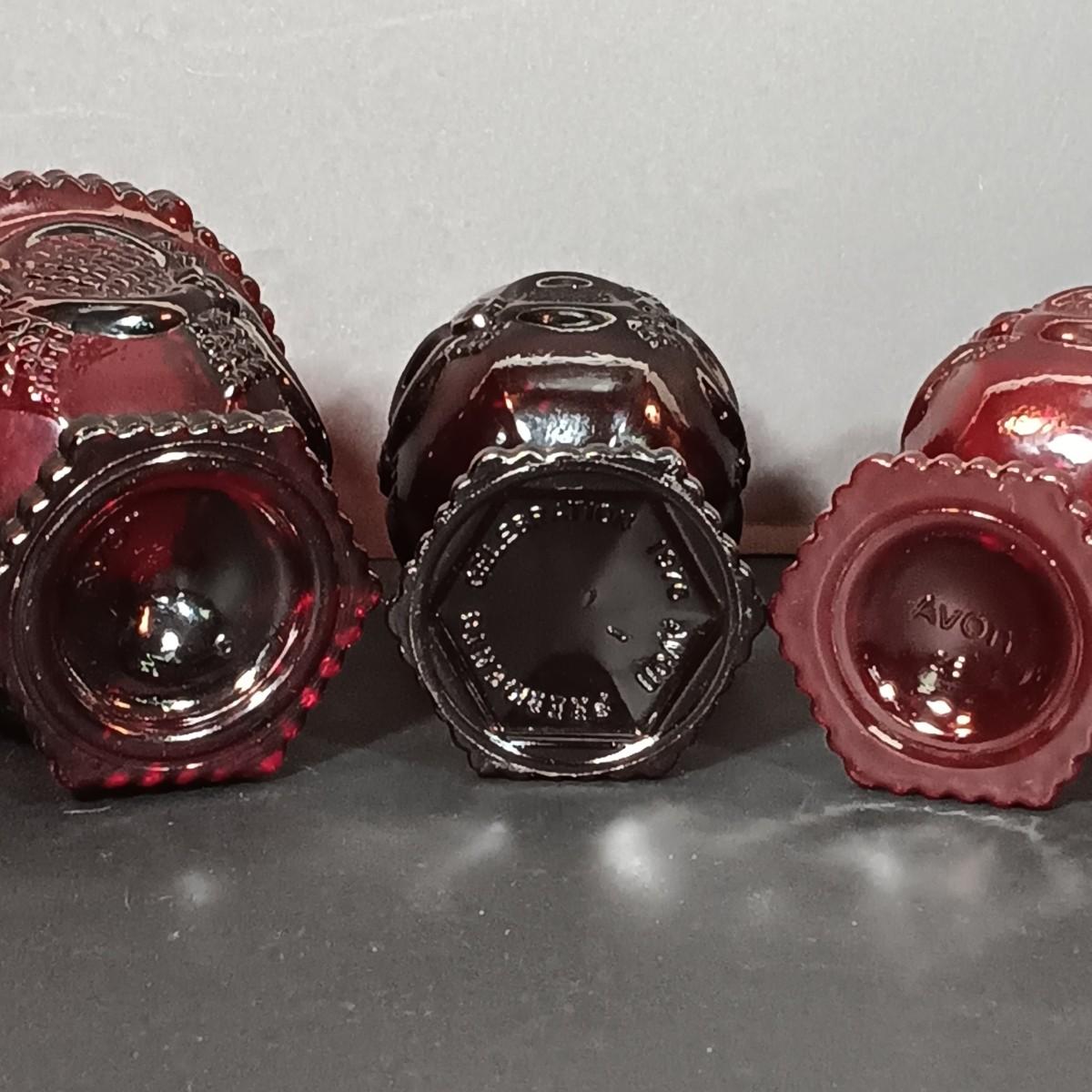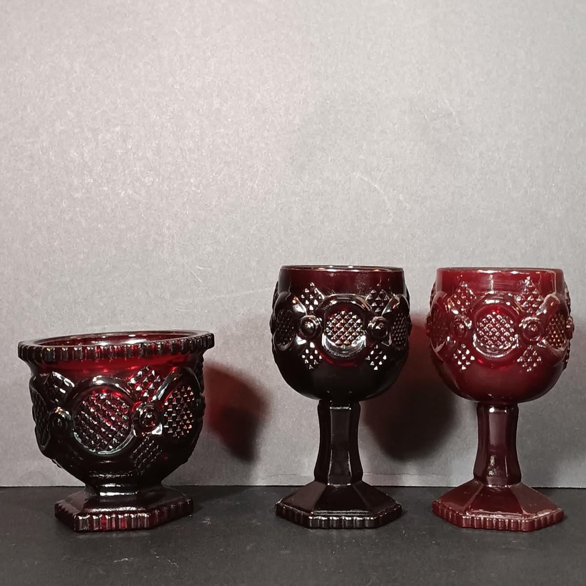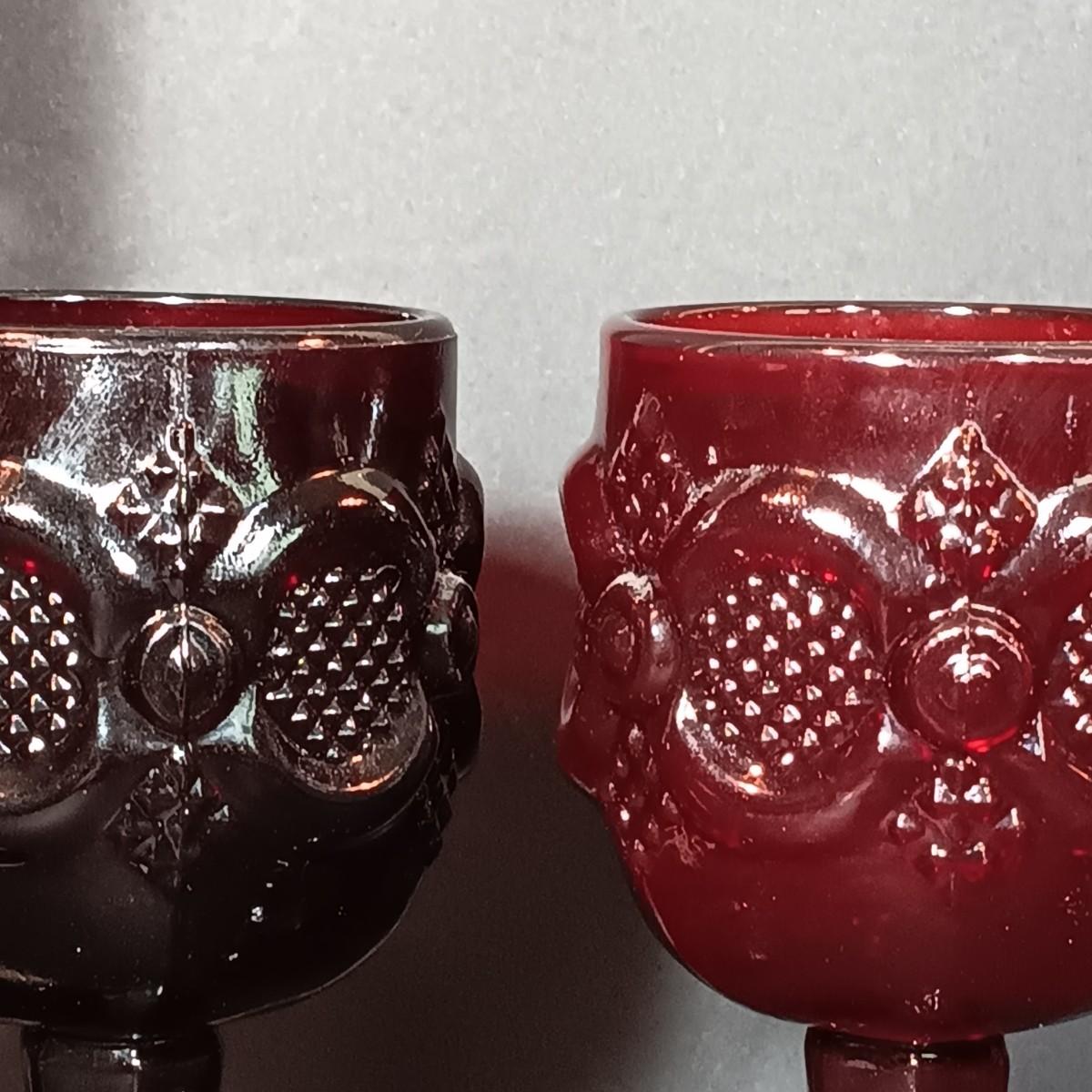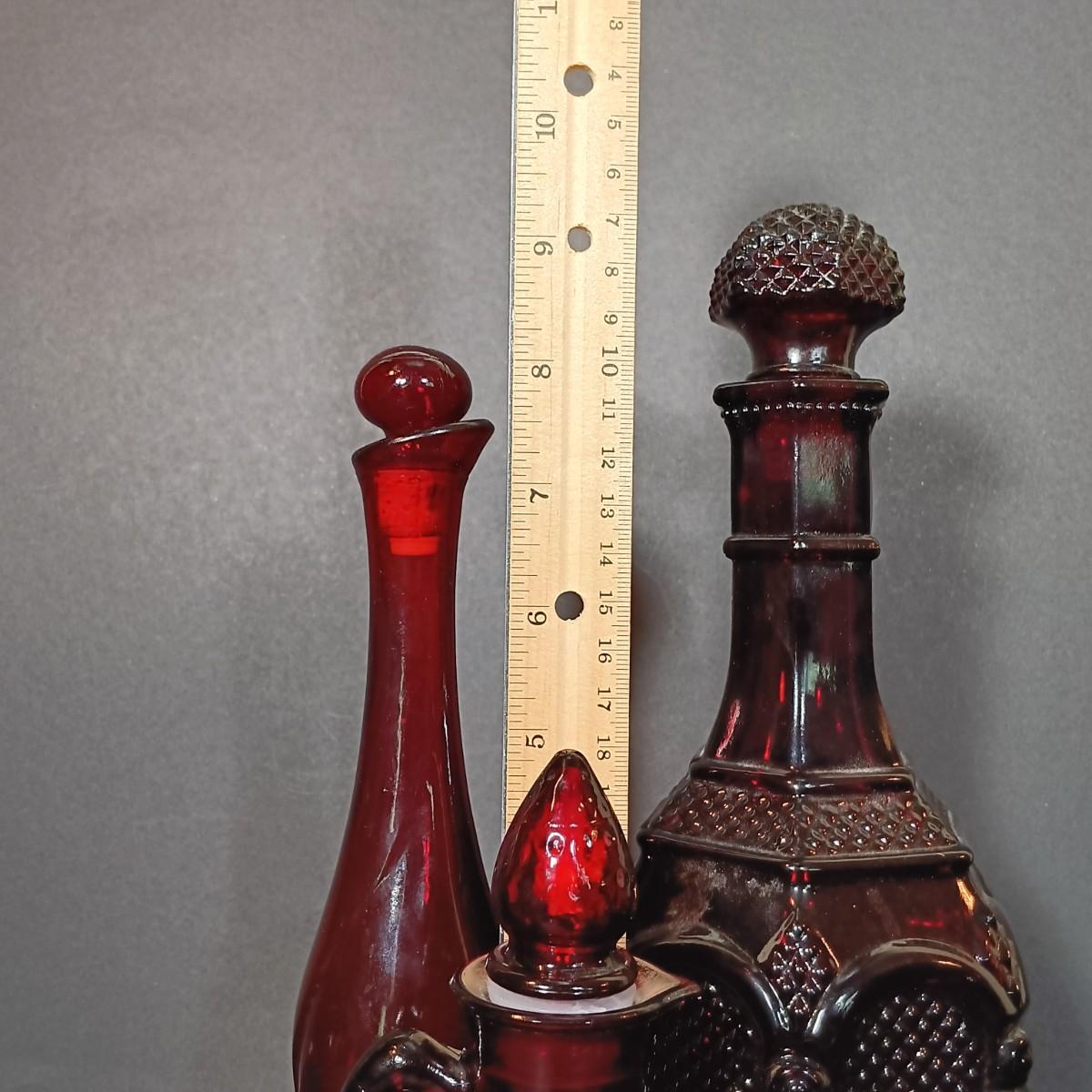 LOT 41: Pair of Vintage Mid-Century Red Ruby Glass Vases w/White Birds & Flowers & More