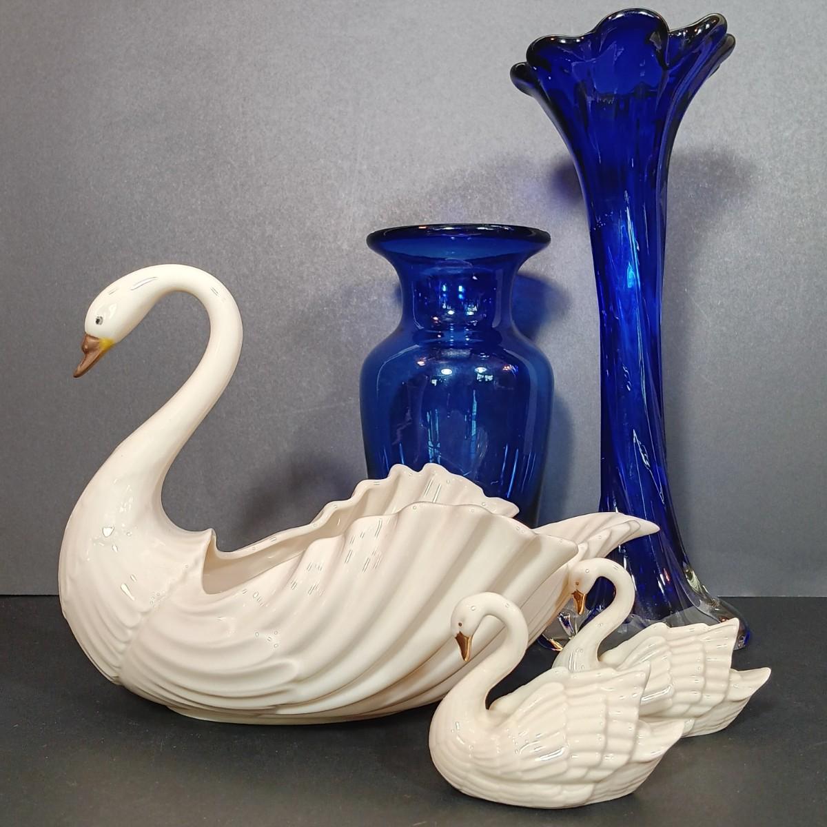 LOT 44: Lenox Swans & Cobalt Blue Vases