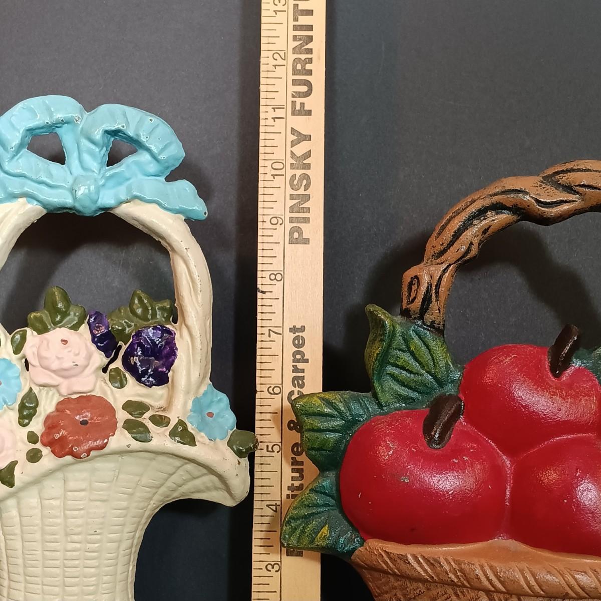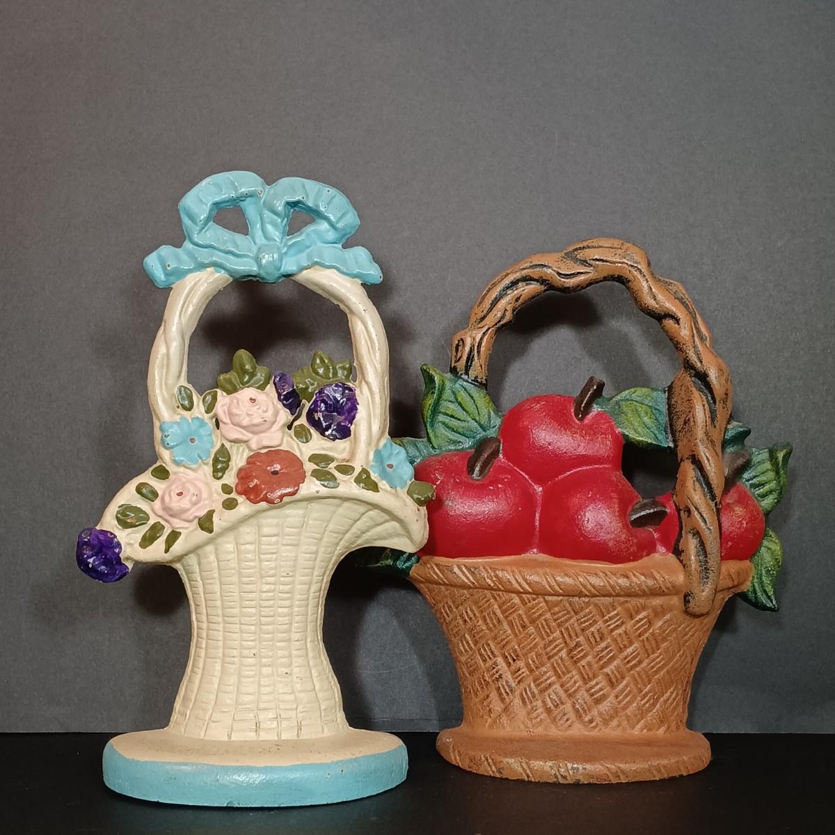 LOT 46: Cast Iron Doorstops: Basket of Apples & Basket of Flowers