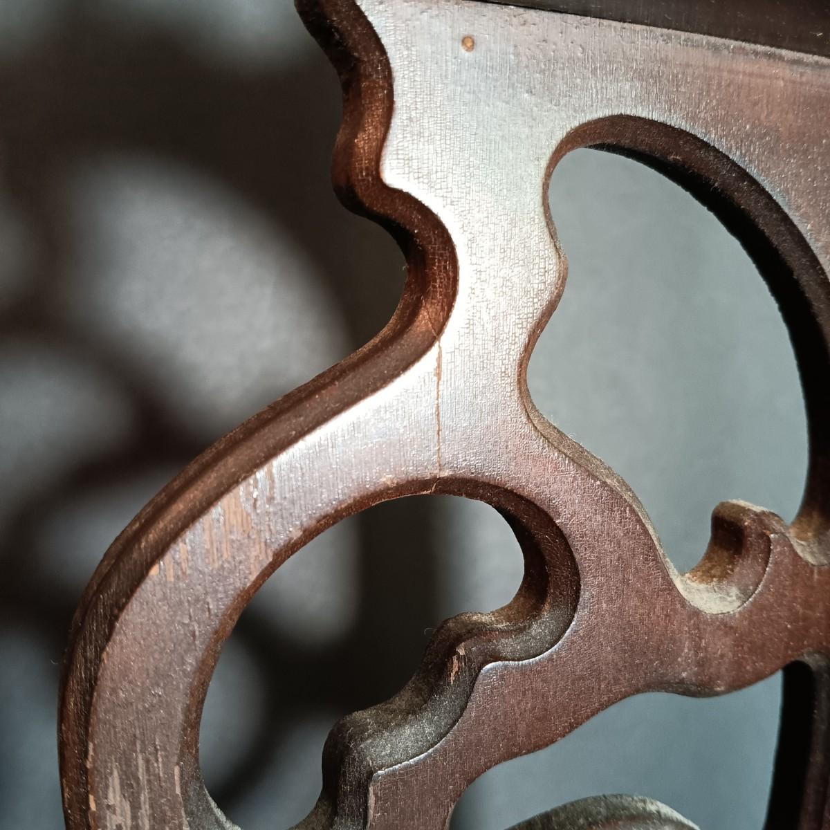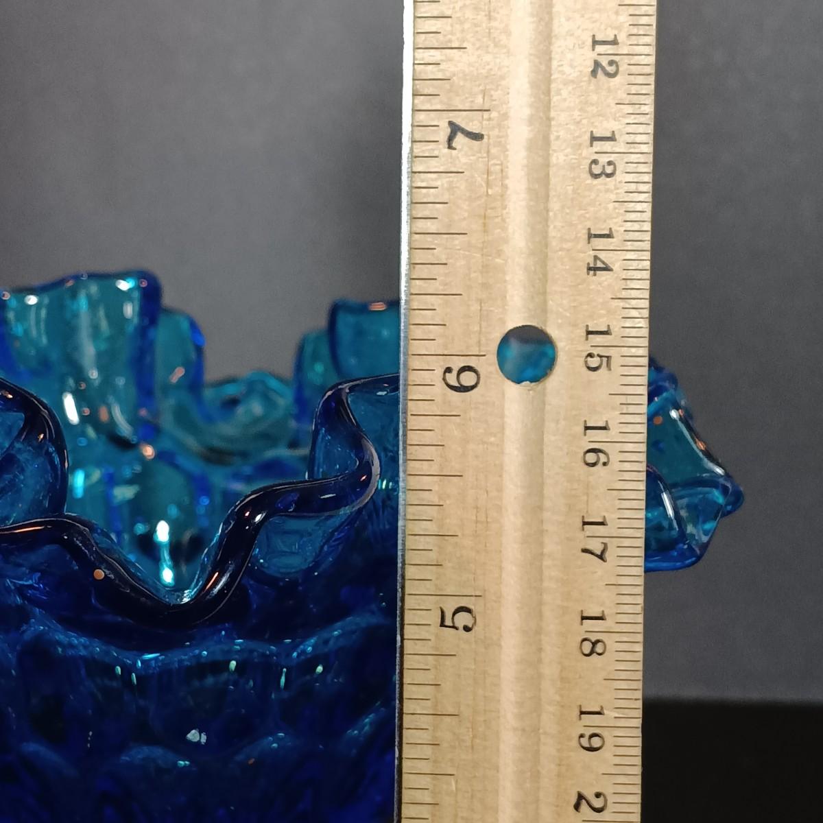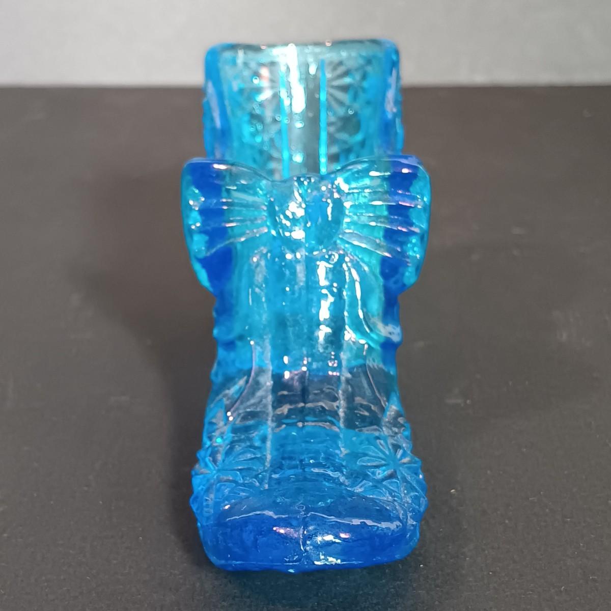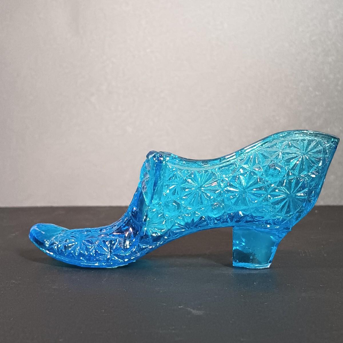 LOT 54: Vintage Corner 3-Tier Shelf & Blue Glass Thumbprint Compote Dish, Shoe, Candle Holders
