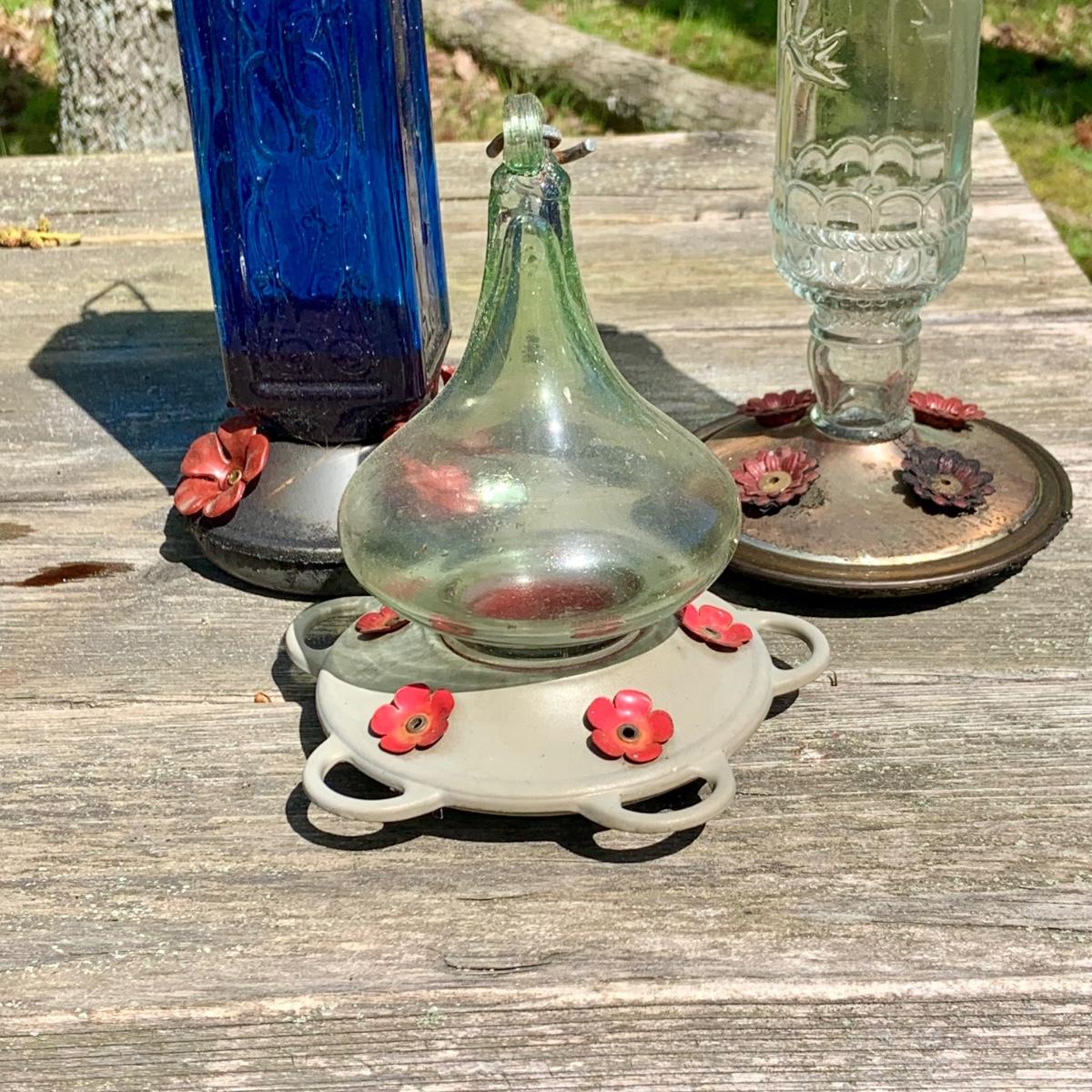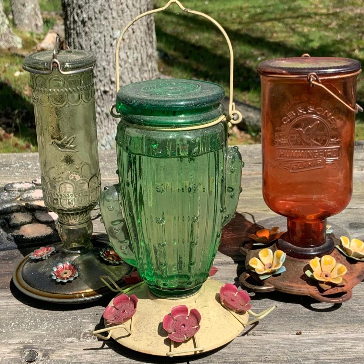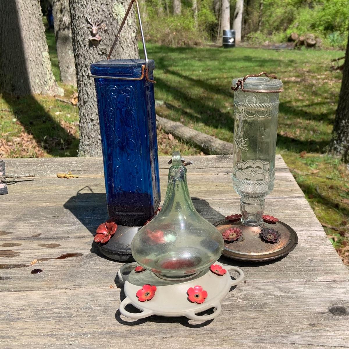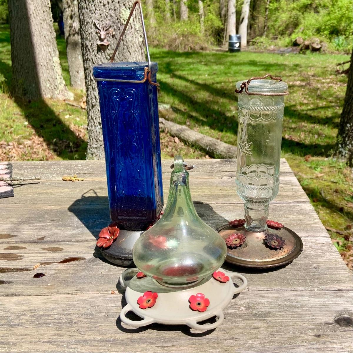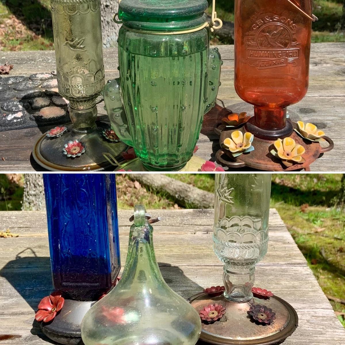 LOT:61/62: Collection of 6 Art Glass/Vintage Bottle Style Bird Feeders