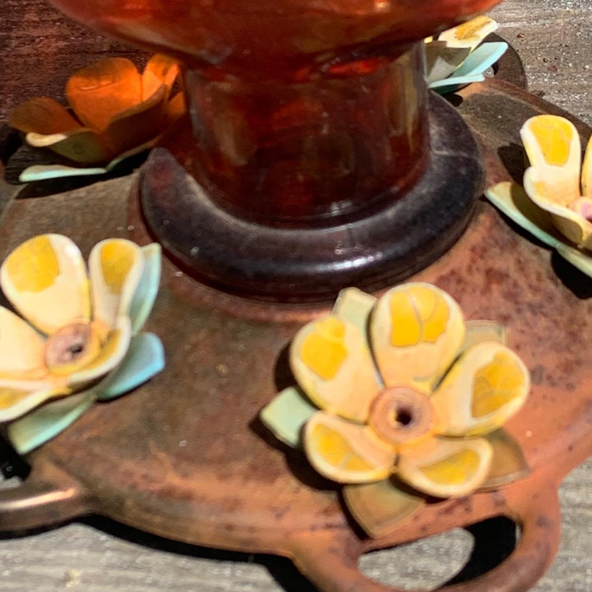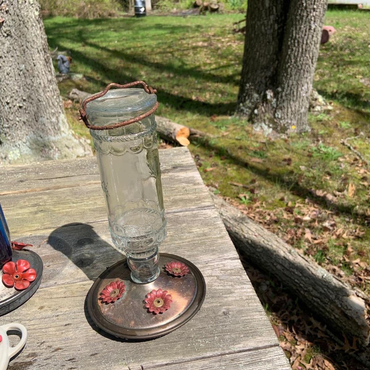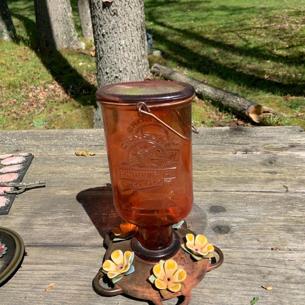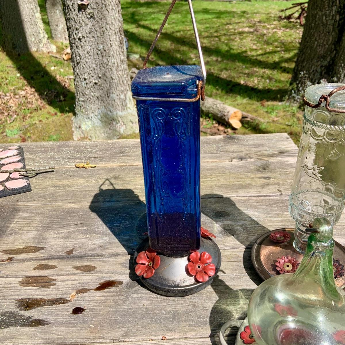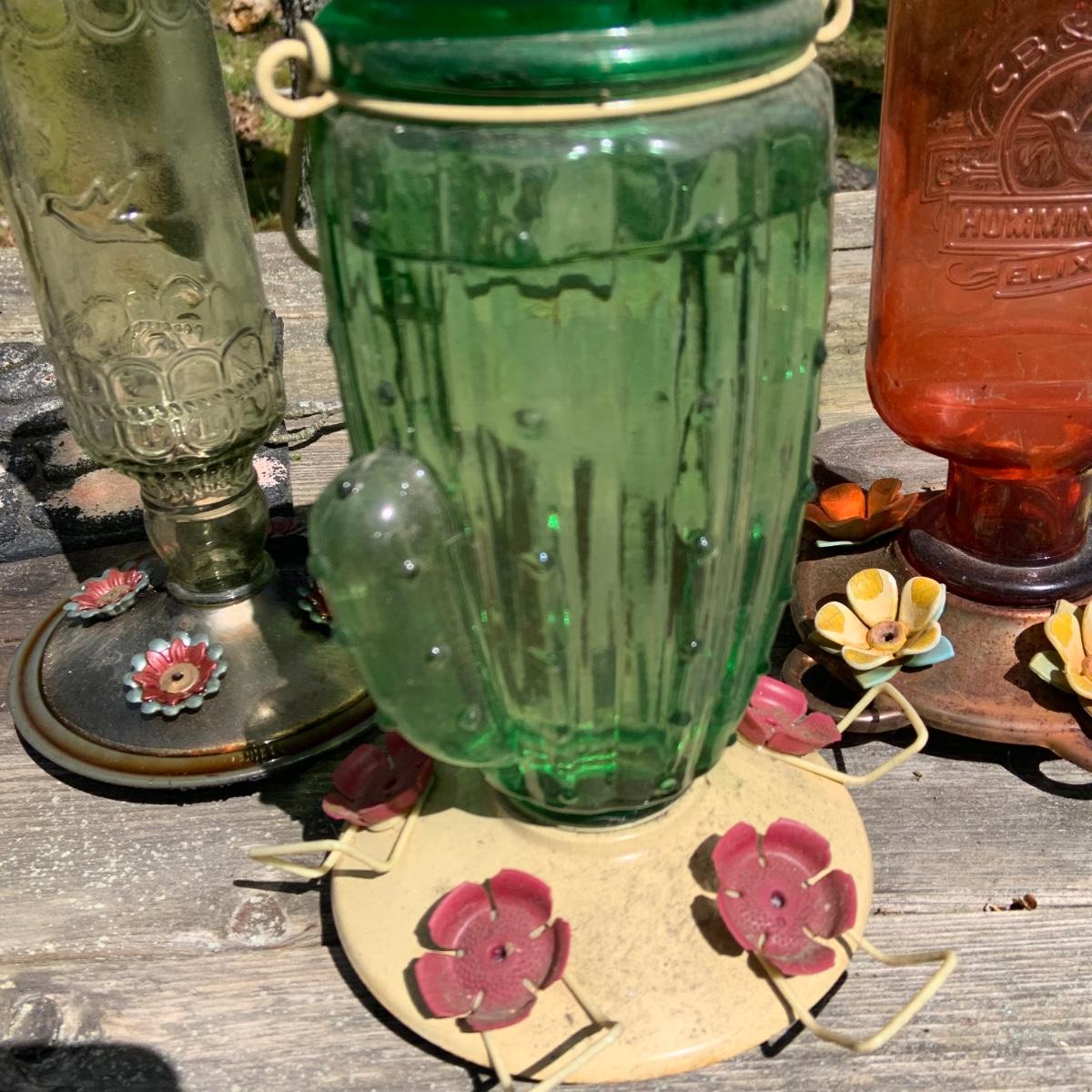 LOT:61/62: Collection of 6 Art Glass/Vintage Bottle Style Bird Feeders