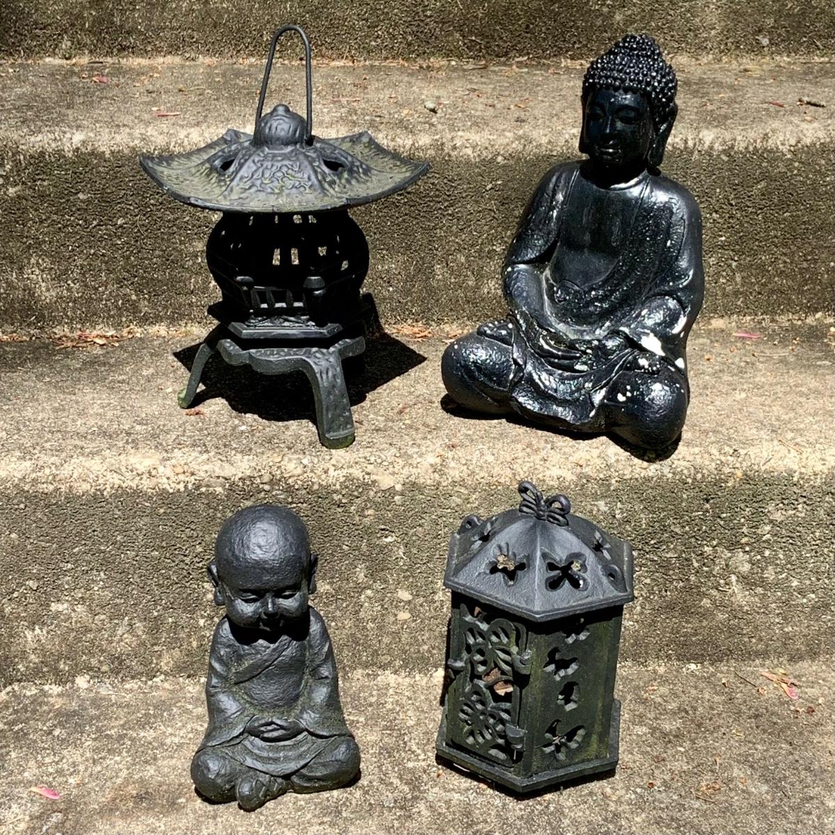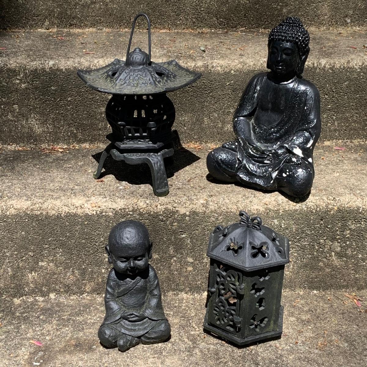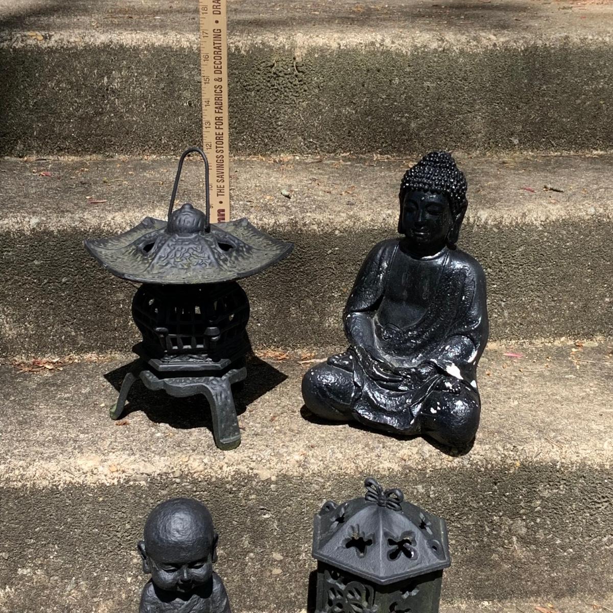 LOT 65: Asian Inspired Cast Iron Lanterns/Lamps, Chalk and Resin Buddas Figures