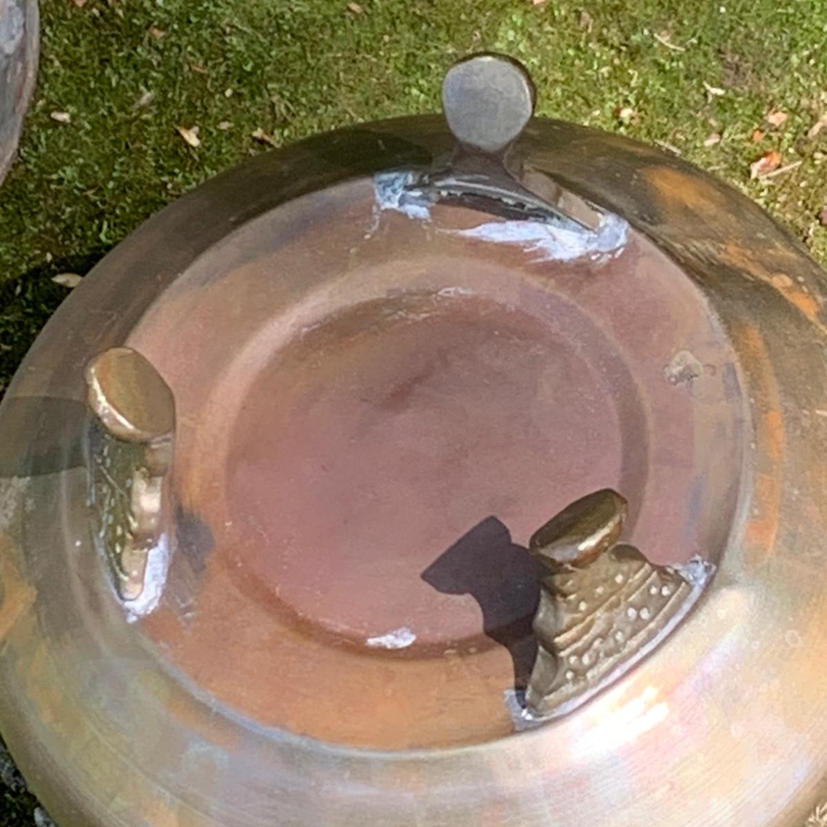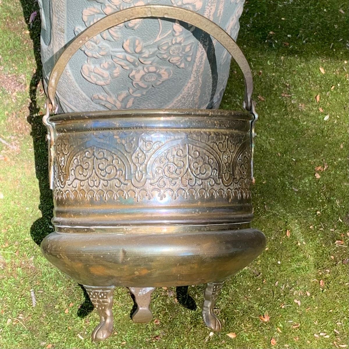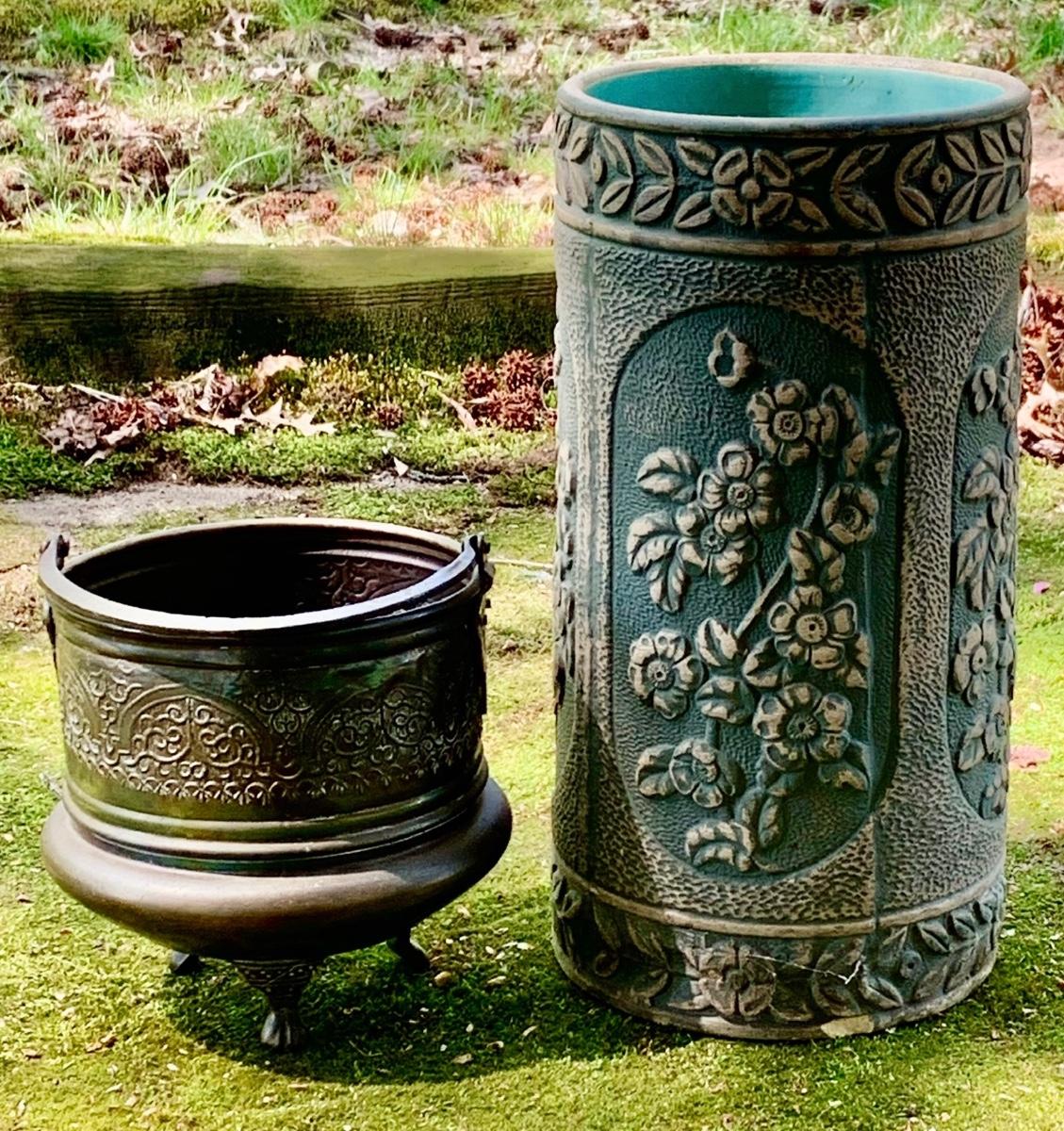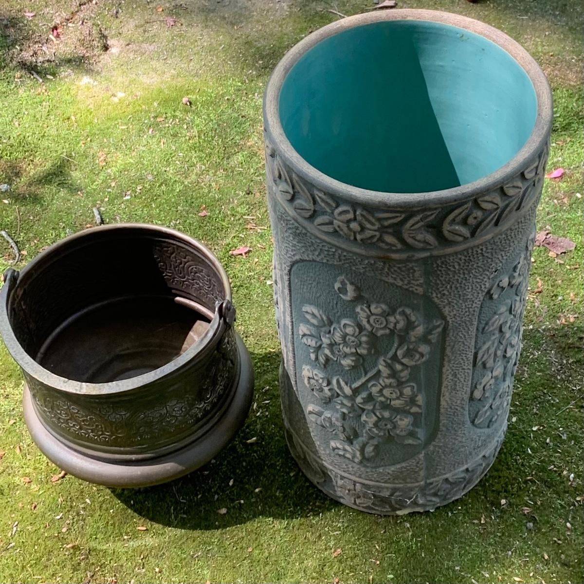 LOT 72: Robinson Ransbottom Pottery Style Umbrella Stand and Brass/Cooper Footed Pot with Handle