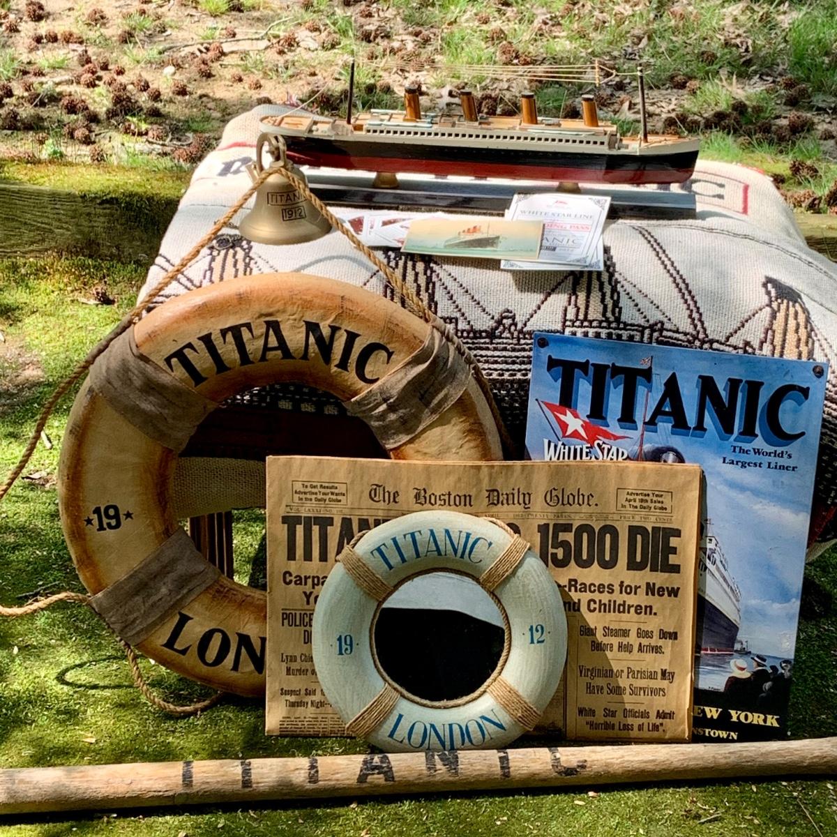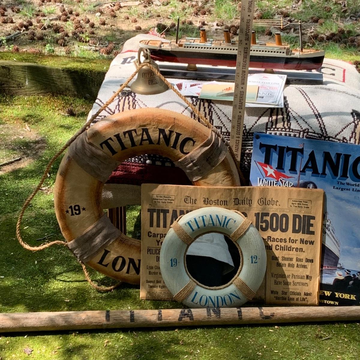 LOT 73: Titantic Memorabilia Including an Oar, Life Preserver, Model Ship, Blank, Bell, Assorted Ephemera and More