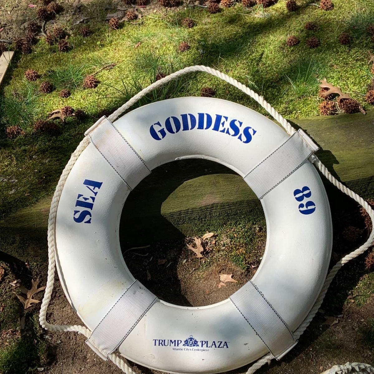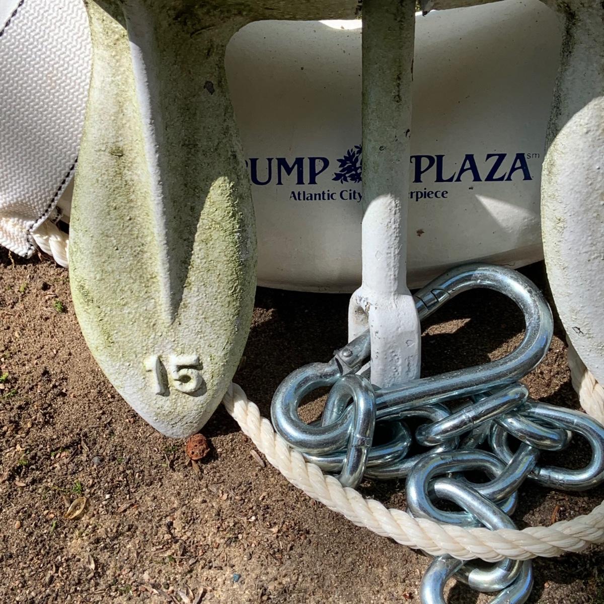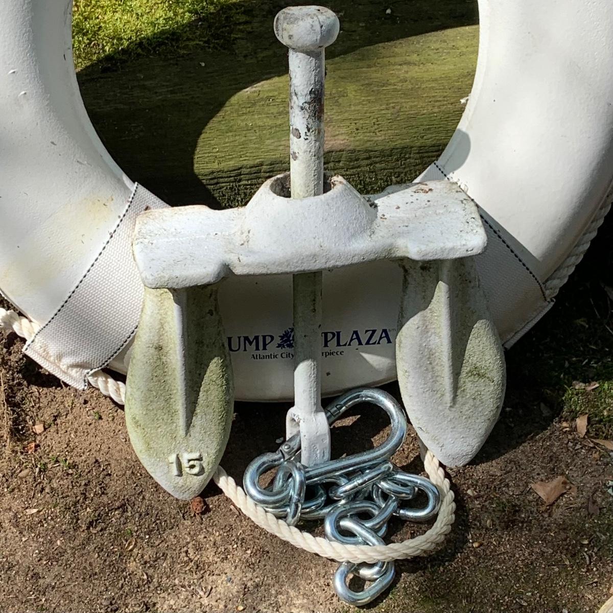 LOT 74: Anchors Away - Sea Goddess Trump Marina Life Preserver, 15lb Anchor and Shark Teeths