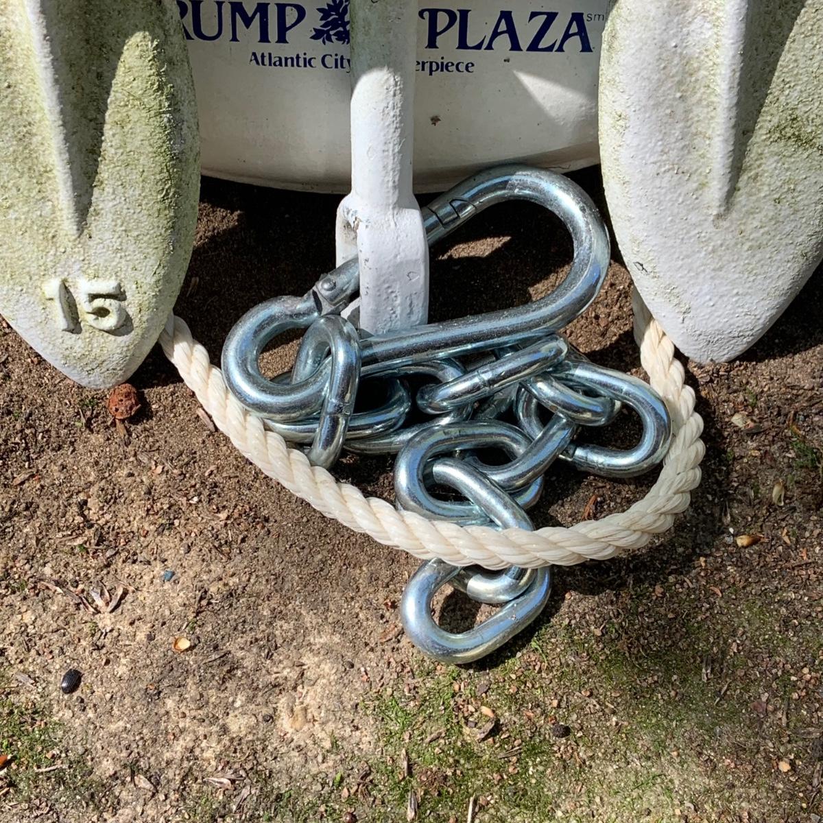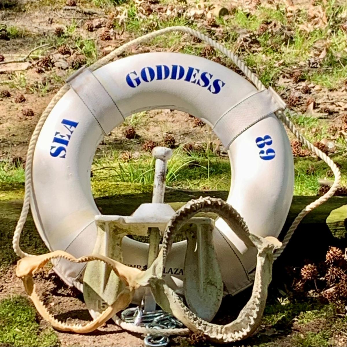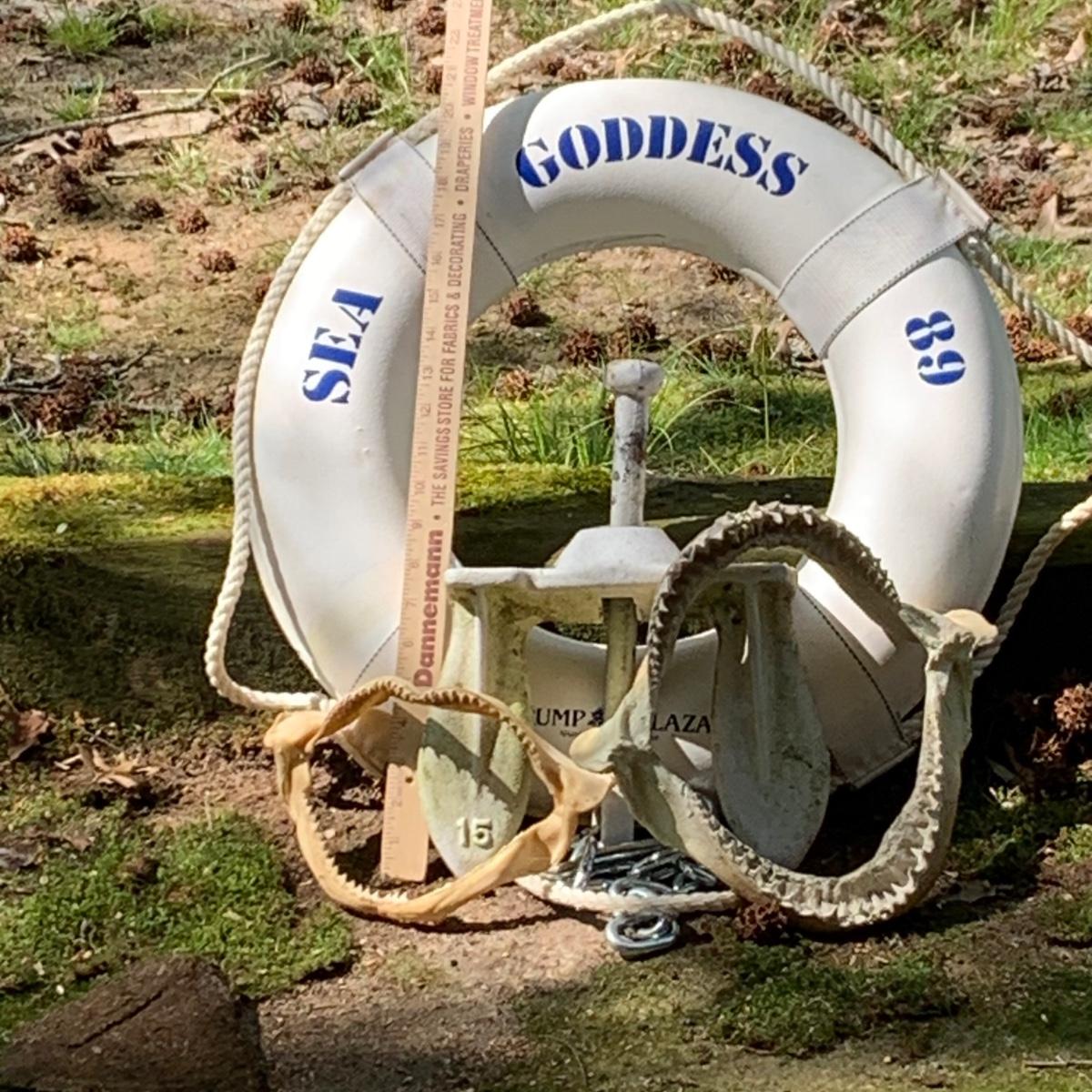 LOT 74: Anchors Away - Sea Goddess Trump Marina Life Preserver, 15lb Anchor and Shark Teeths