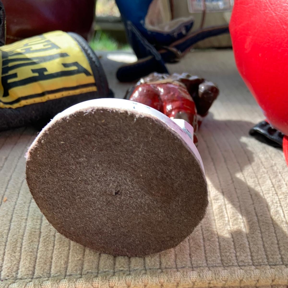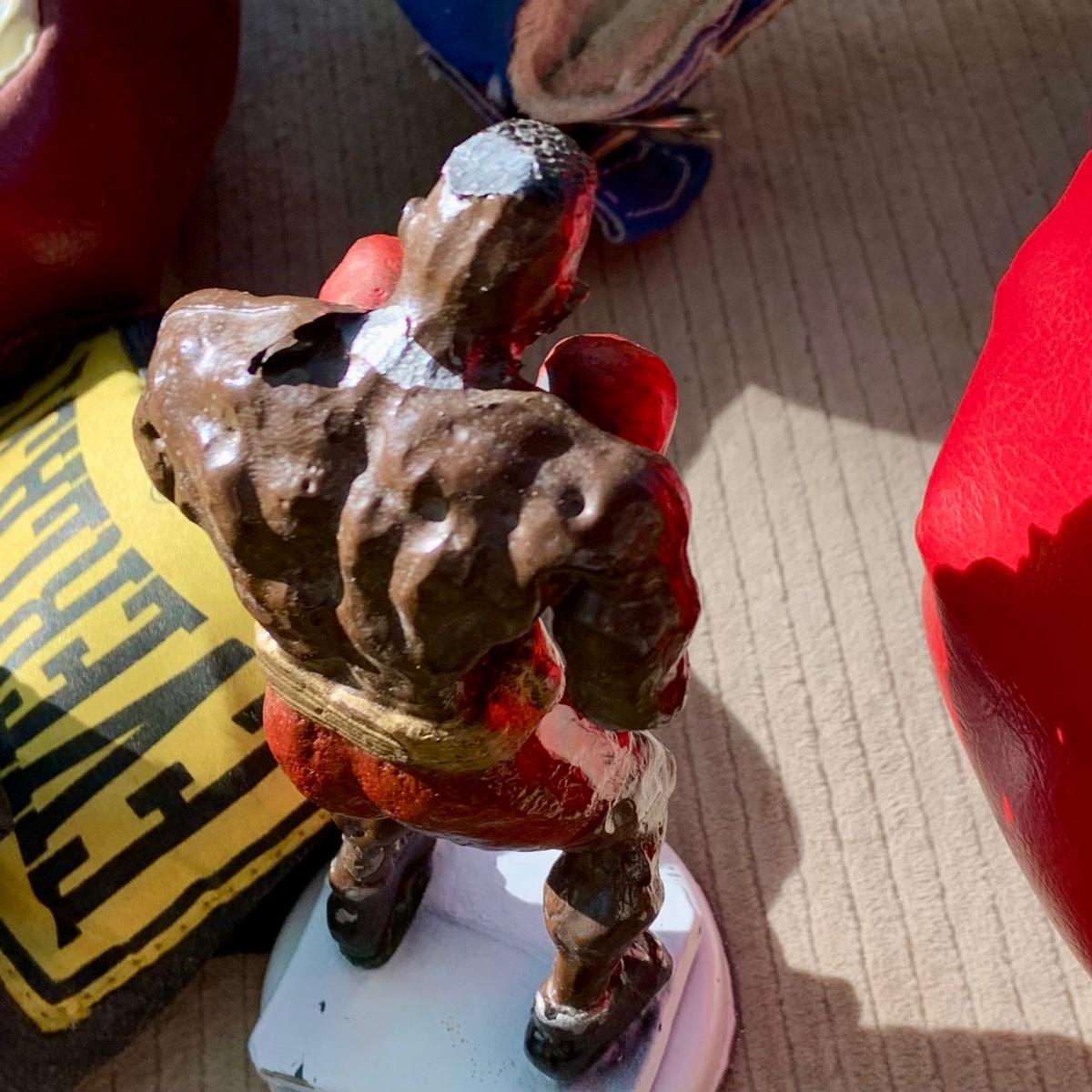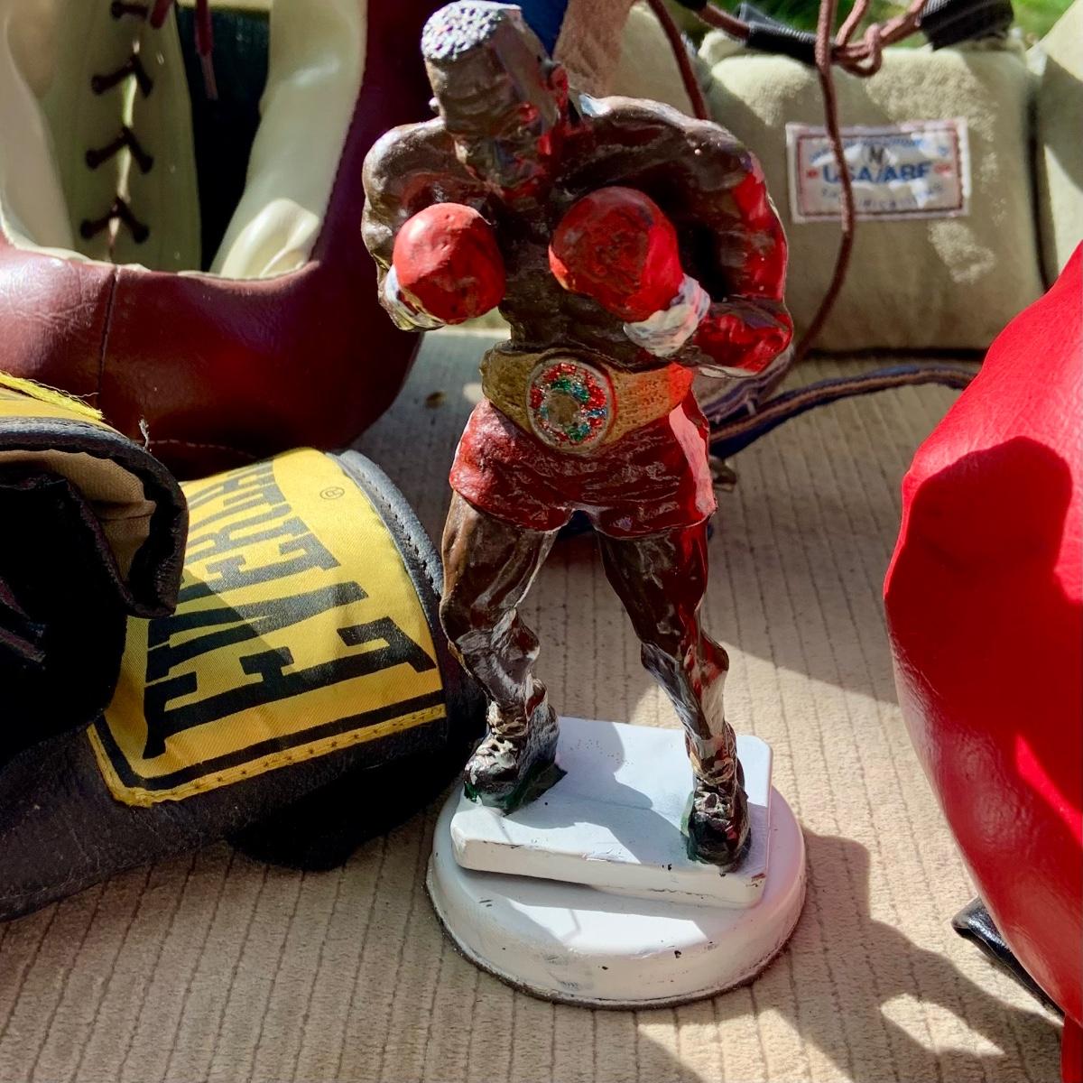 The boxer took one too many punches and has a chip on its head and paint flaking.